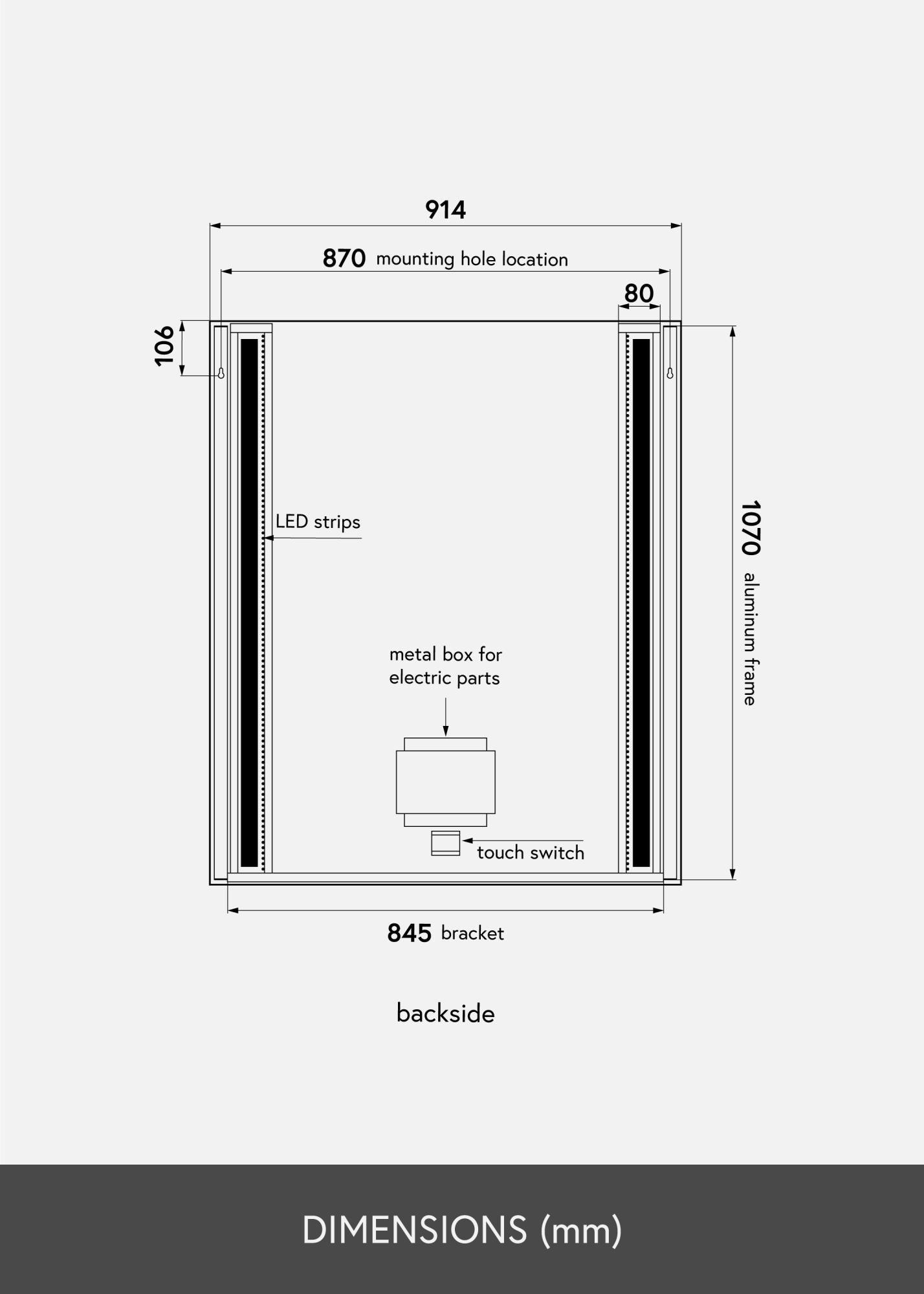 Ez egy elegáns fürdőszobai tükör világítással és klasszikus téglalap alakú formával. A világítás két LED-szalagból áll, amelyek a tükörfelület egy részén találhatók. Ez stílusos, minimalista megjelenést biztosít, amely kiválóan illik a fürdőszobába. A LED-világítás kellemes fényt ad 3000K színhőmérsékleten, és az Ön kényelme érdekében egyszerűen csökkentheti a világítás fényerejét, ha a tükör alsó szélén található érintőgombot nyomva tartja. Így 10-100% fényerőt állíthat be. A tükör fix telepítésre van szánva és egy kapcsolóhoz csatlakozik. Annak érdekében, hogy a tükör megfelelően működjön, hagyományos kapcsolóhoz kell csatlakoztatni, nem pedig szabályzó kapcsolóhoz.