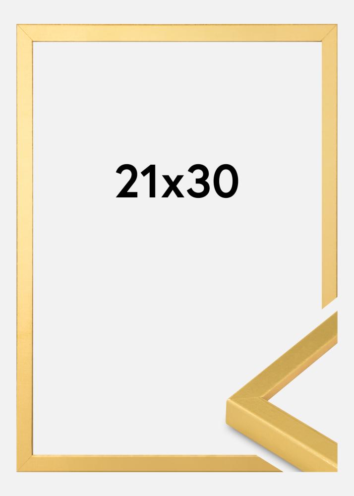 Az arany színű képkeret 21x30 cm méretű motívumokhoz készült. 12 mm széles keretlécével és 16 mm mélységével stabil és robusztus érzést nyújt, anélkül hogy az eleganciát feláldozná. A keret hátul fémakasztókkal van felszerelve, így egyszerűen függeszthető vízszintesen és függőlegesen is, attól függően, mi illik legjobban a motívumhoz.