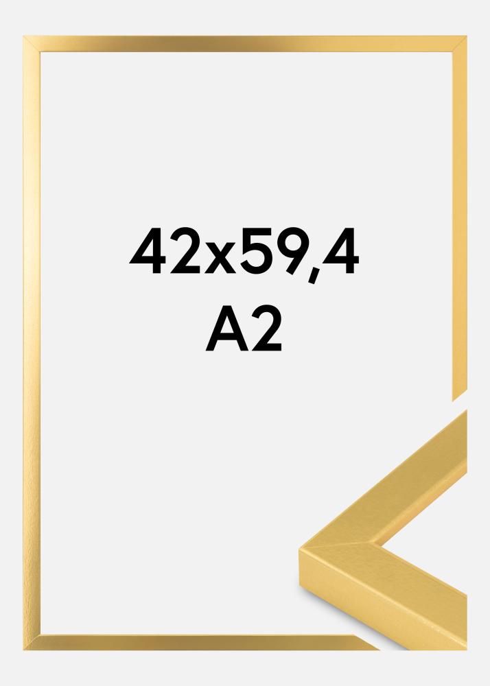 Frissítse otthonát ezzel az aranyszínű fényképkerettel, amely tökéletesen illik a 42x59,4 cm (A2) méretű motívumokhoz. Ez a képkeret fából készült, és elegáns, modern dizájnnal rendelkezik, amely a luxust sugallja. A letisztult profil és a felületen lévő finom fényesség exkluzív és kifinomult megjelenést kölcsönöz a képeknek vagy műalkotásoknak.