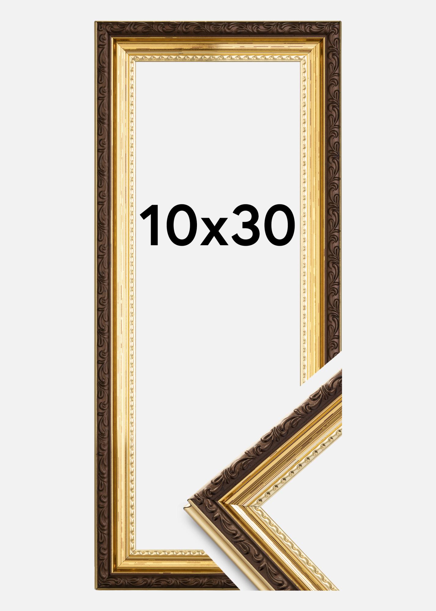 Szép, régi stílusú keretet keresel? Az Abisko akril üveg Arany egy masszív aranykeret hihetetlenül elegáns díszítéssel. A keret 25 mm széles listája fényes arany színű, közepén díszített barna szegéllyel. Az arany rész is díszített, hullámos mintával az üveg közelében.