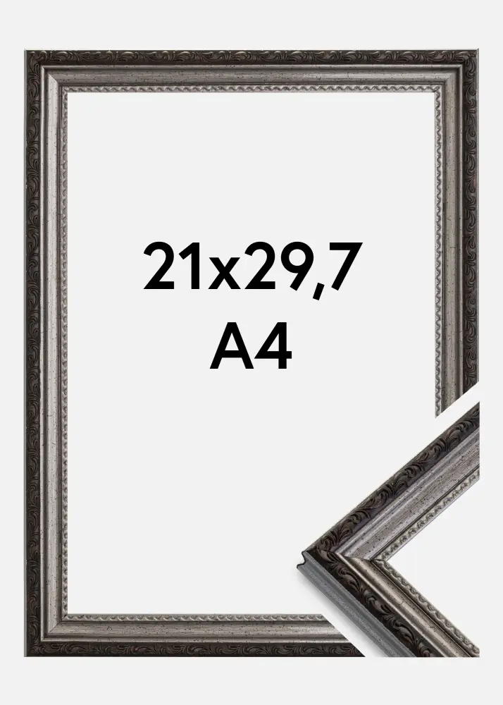 Abisko egy elegáns ezüst keret retró stílusban, szép díszítésekkel. Kiváló választás, ha klasszikus ezüst színű keretet keresel.