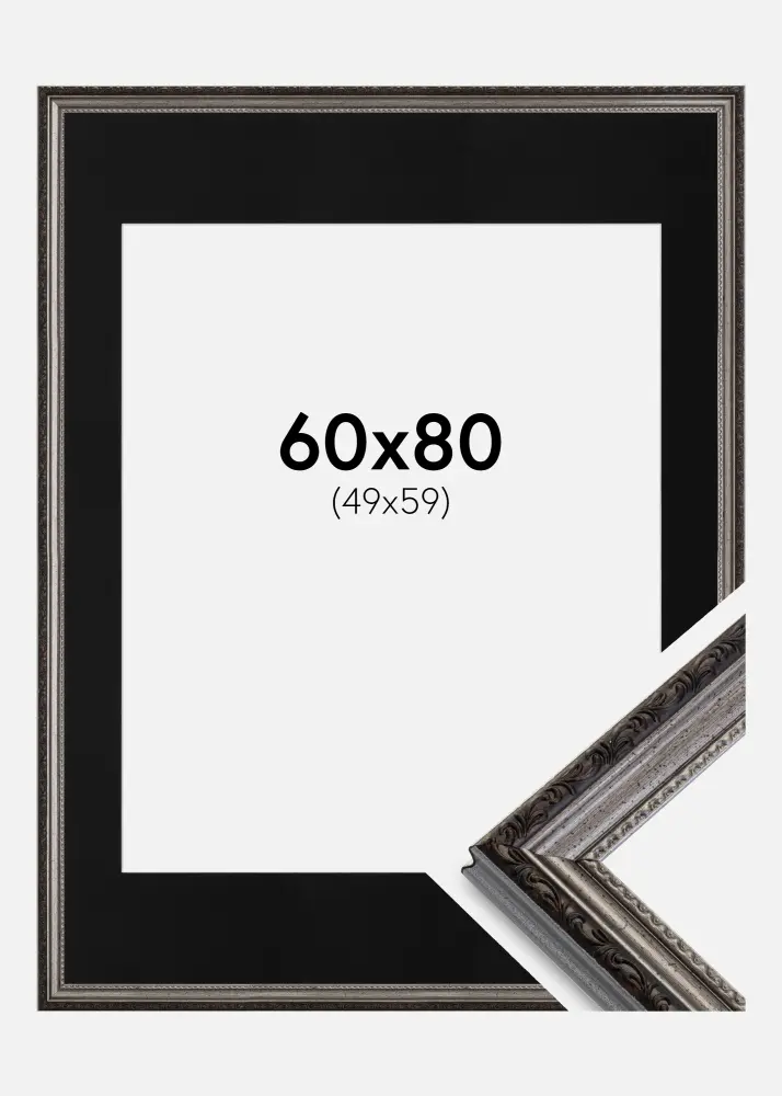 Keret Abisko Ezüst 60x80 cm - Paszpartu Fekete 50x60 cm