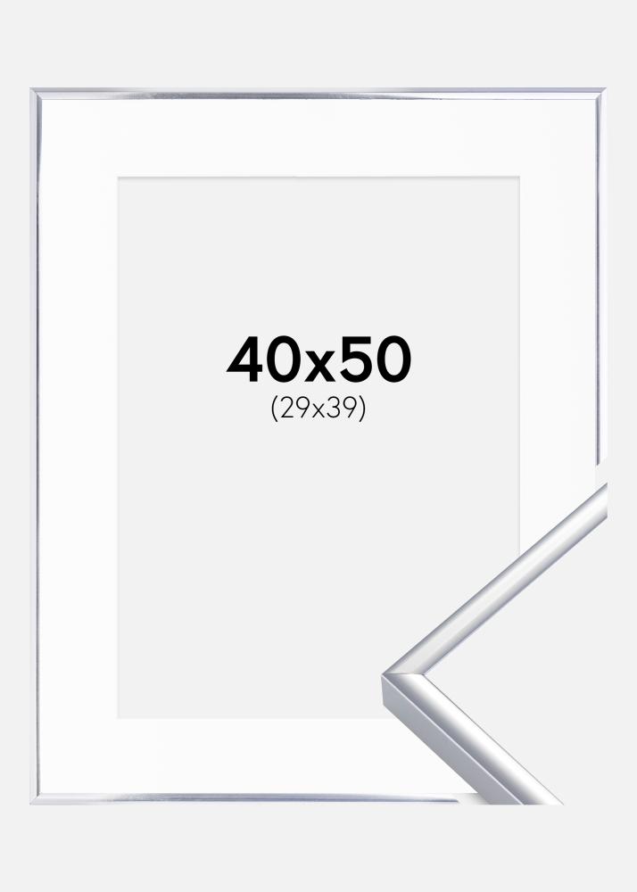 Keret Alumínium Csiszolt Ezüst 40x50 cm - Paszpartu Fehér 30x40 cm