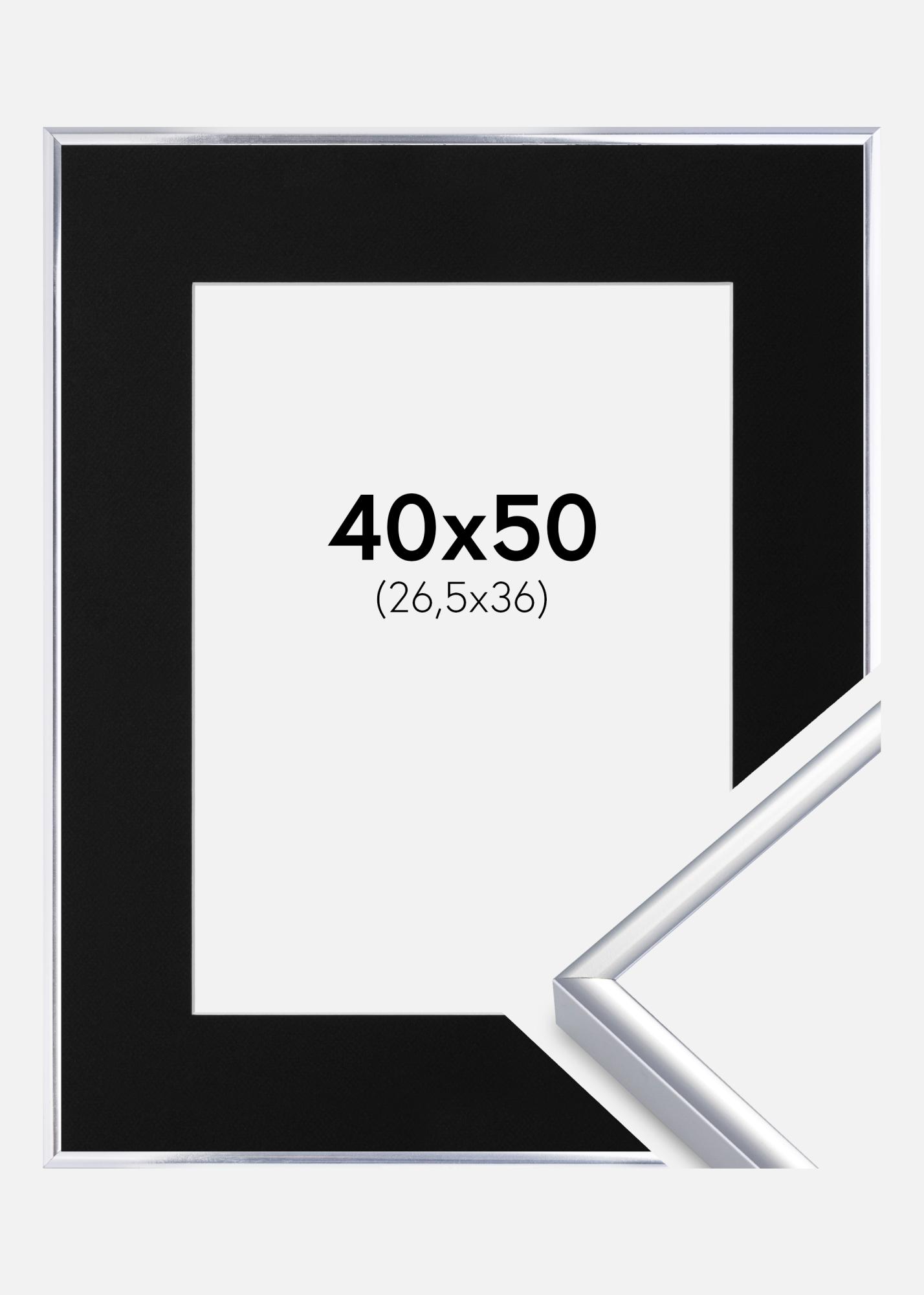 Keret Alumínium Csiszolt Ezüst 40x50 cm - Paszpartu Fekete 27,5x37 cm