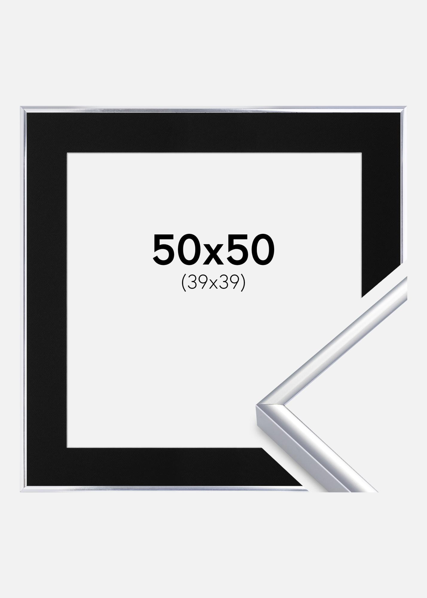 Keret Alumínium Csiszolt Ezüst 50x50 cm - Paszpartu Fekete 40x40 cm