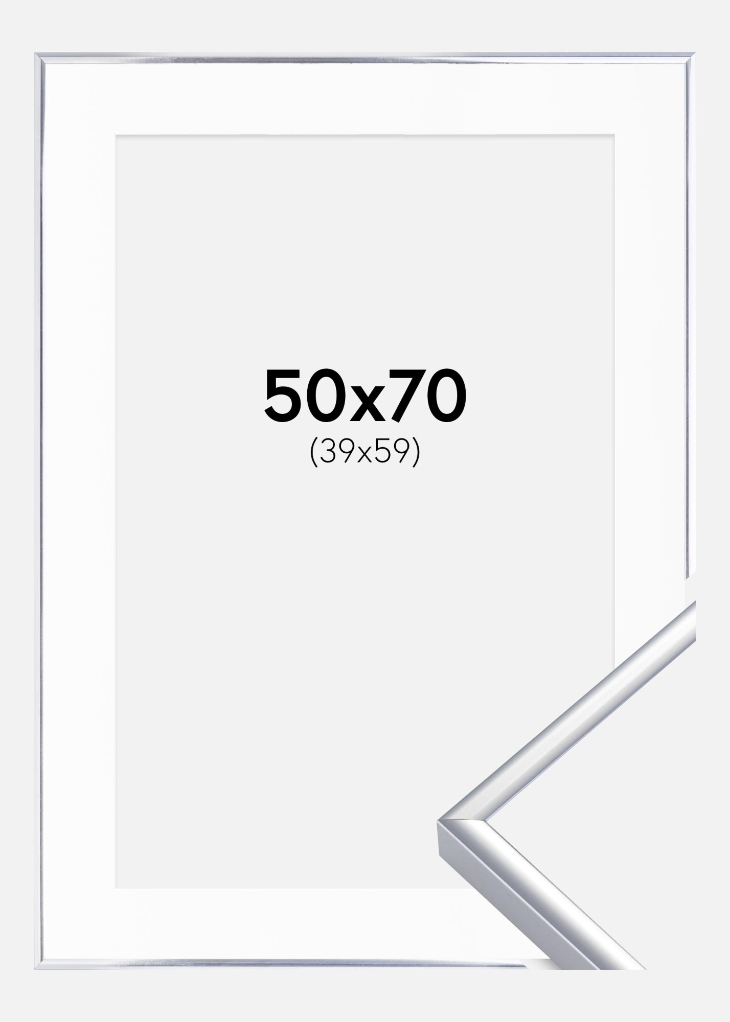 Keret Alumínium Csiszolt Ezüst 50x70 cm - Paszpartu Fehér 40x60 cm