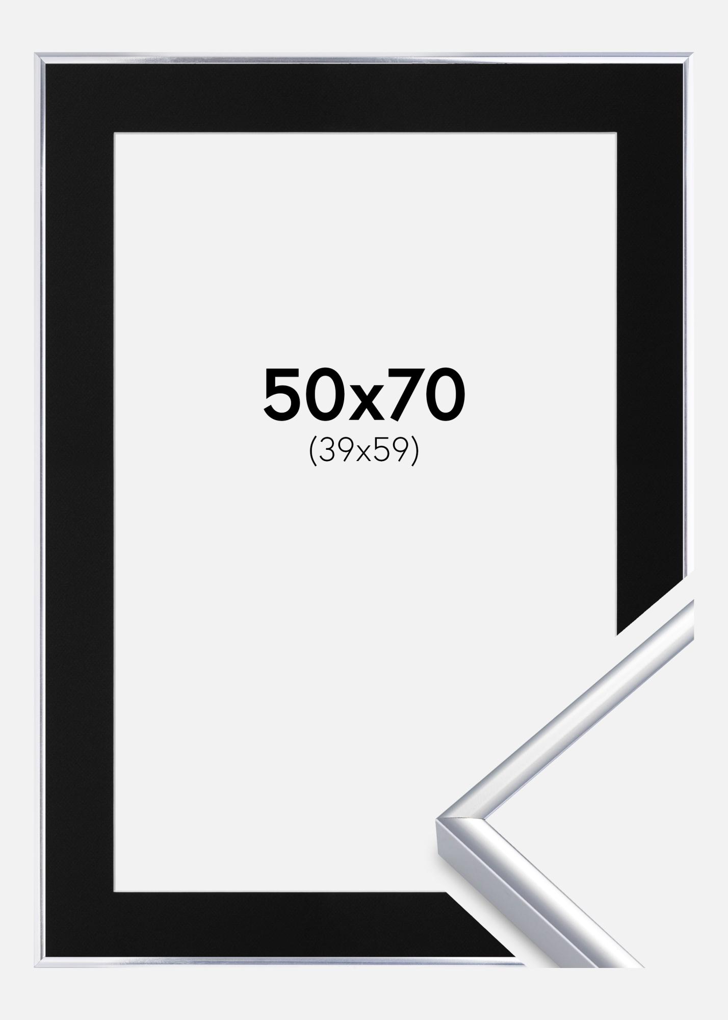 Keret Alumínium Csiszolt Ezüst 50x70 cm - Paszpartu Fekete 40x60 cm