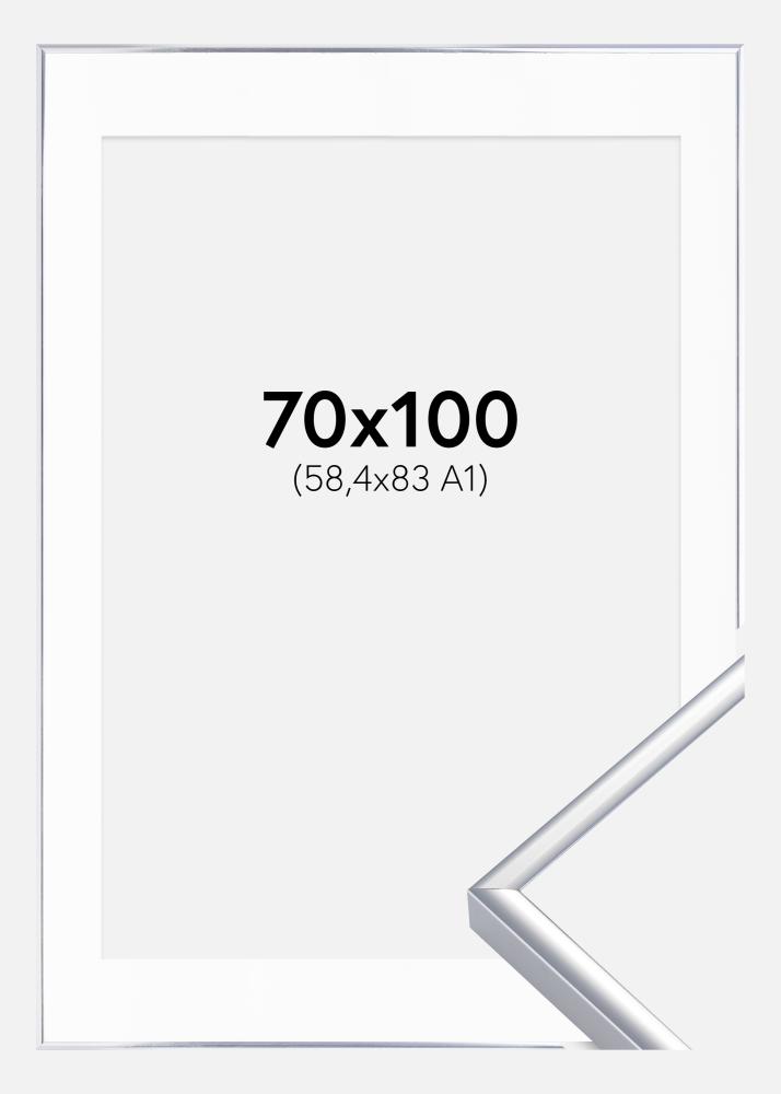 Keret Alumínium Csiszolt Ezüst 70x100 cm - Paszpartu Fehér 59,4x84 cm (A1)