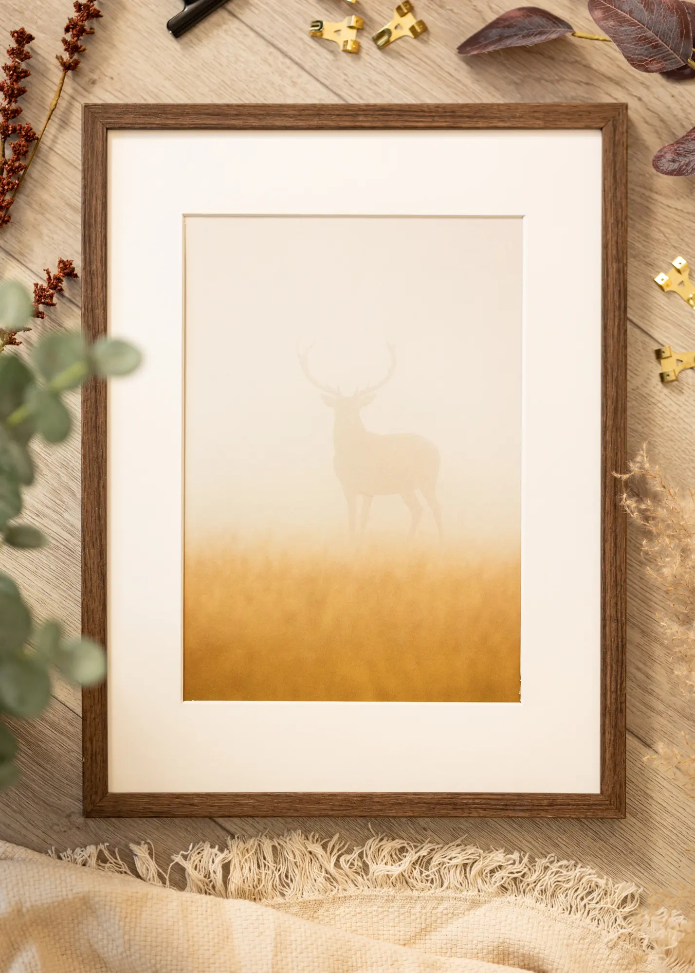 20 mm-es mélységével a keret jellegzetes jelenlétet kölcsönöz a falnak. Hátulja fémakasztókkal van ellátva, így diós keretét vízszintesen és függőlegesen is felakaszthatja. Ne felejtse el eltávolítani az akrilüveg mindkét oldalán található védőfóliákat használat előtt, hogy zavartalanul élvezhesse műalkotásait. Ez a keret több méretben is kapható, de a 30 x 40 cm-es változat különösen népszerű méret, amely számos otthonba illik.