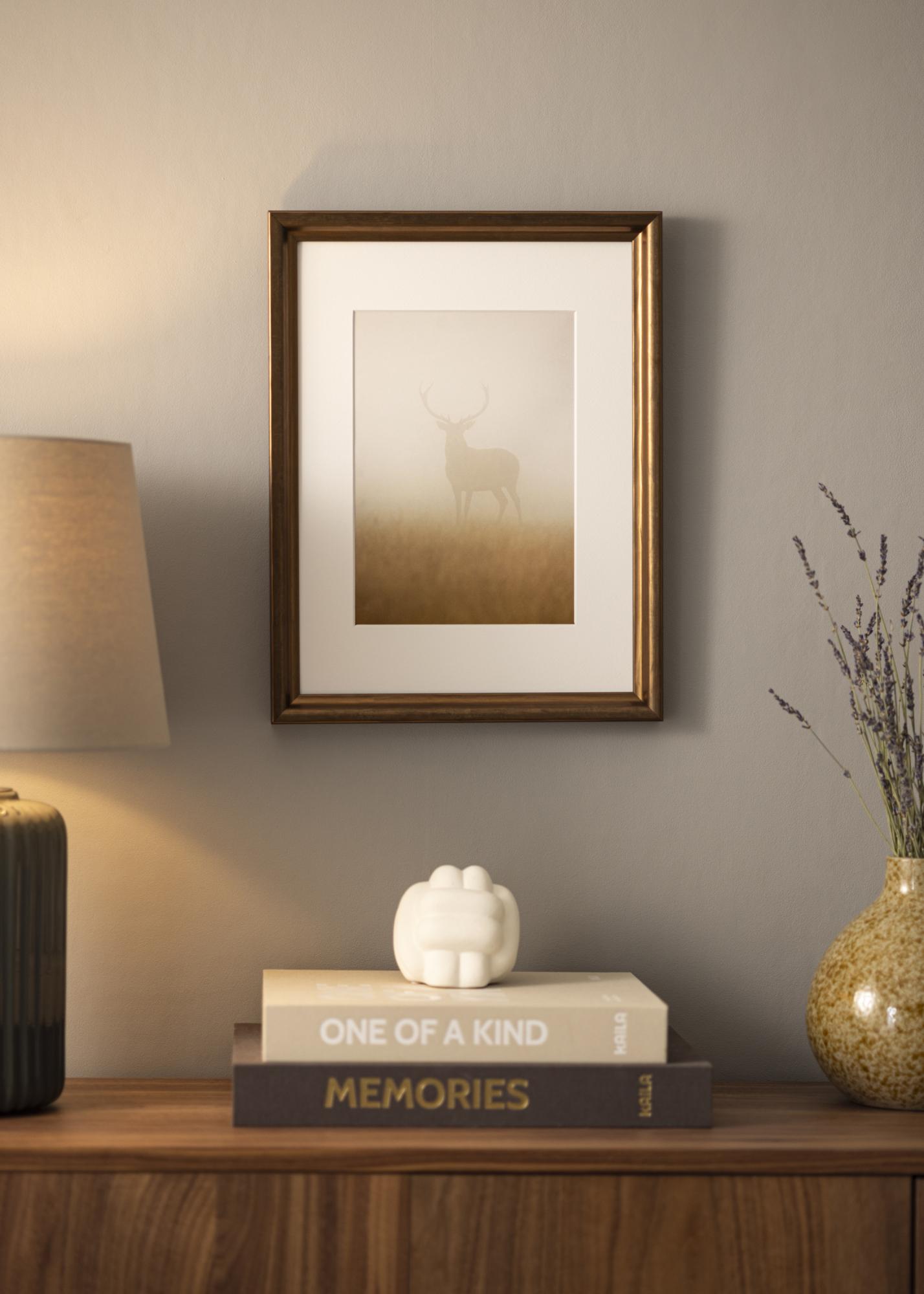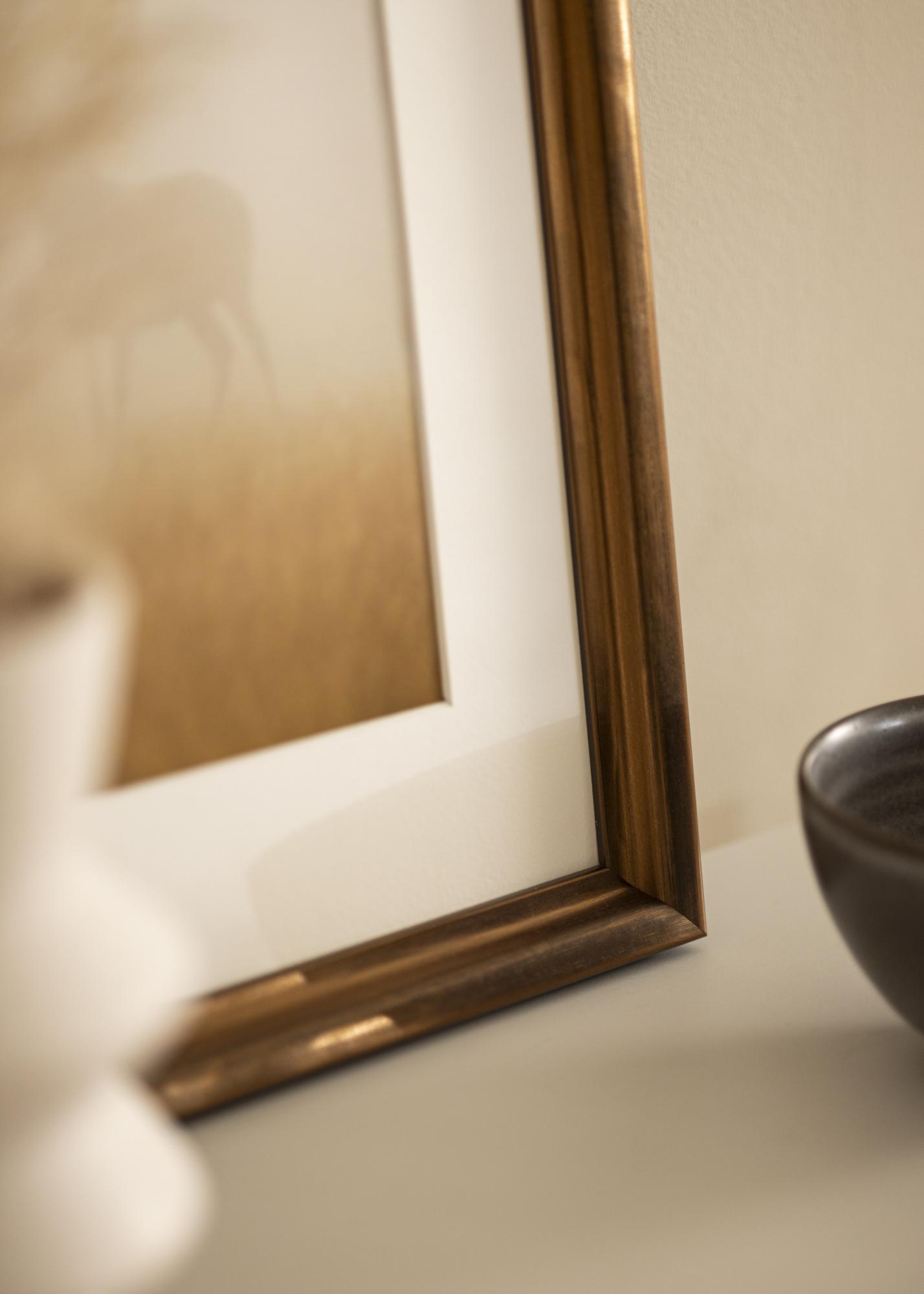 Stílusos keret egyedi méretekben, finom rézszínben, amely robusztus és exkluzív benyomást kelt. Az Arjeplog Bronz nem egy univerzális keret, amely minden típusú motívumhoz illeszkedik, de bizonyos képekhez kiváló választás.