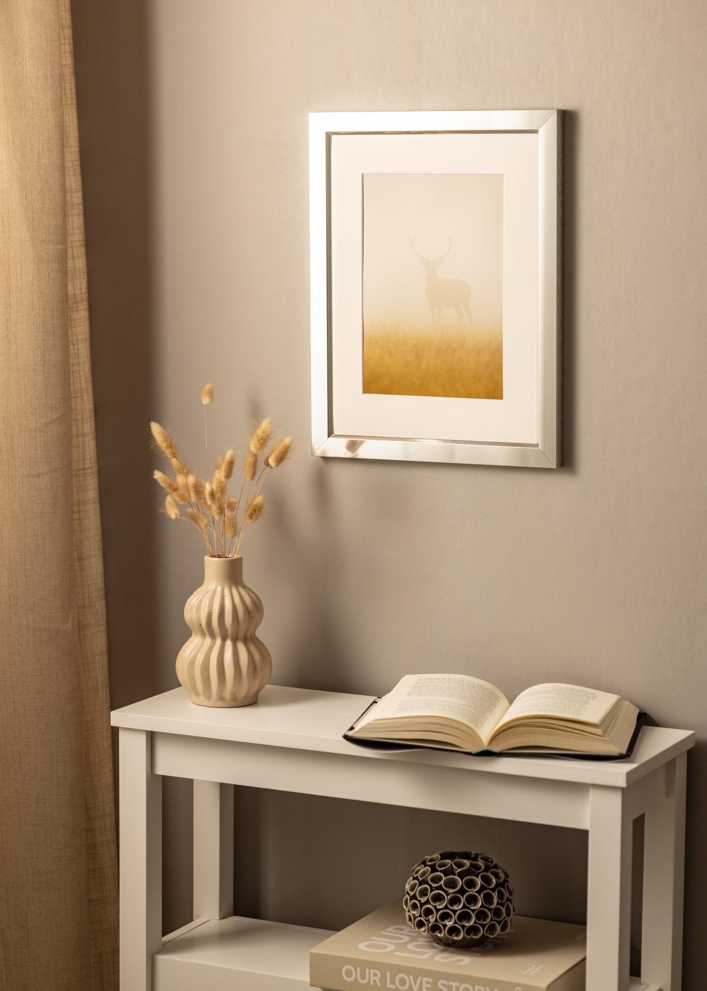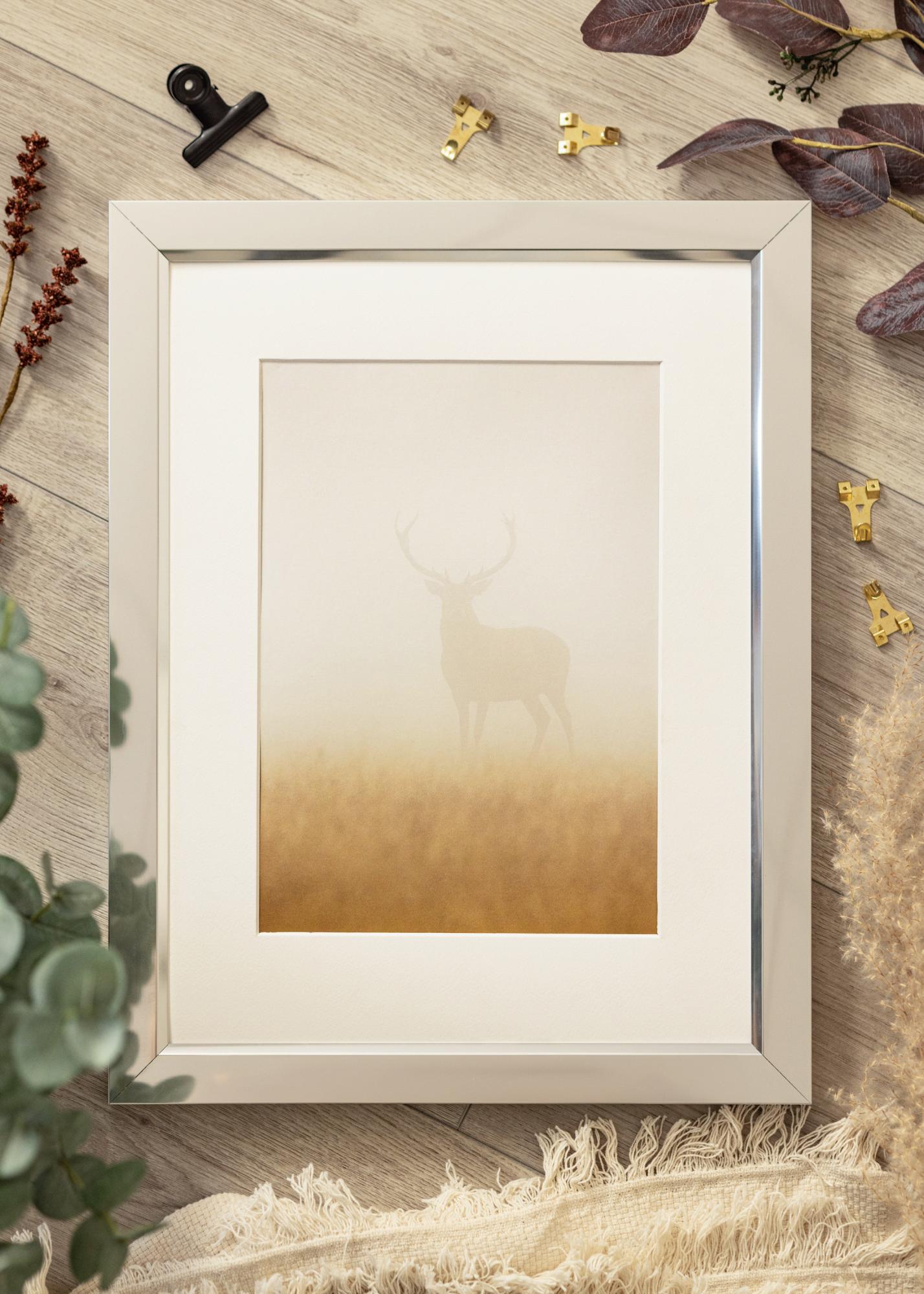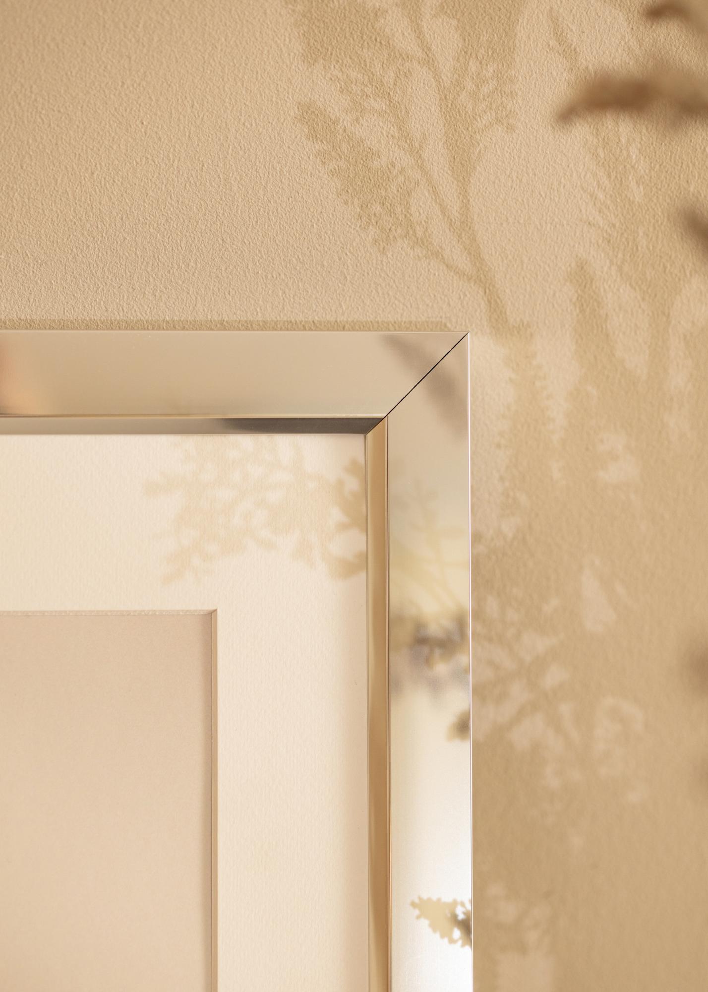Elegáns, fényes ezüst keret tükröződő üveg hatással, amely egy minőségi, Németországban gyártott alumínium keretből áll. A magasfényű megjelenés vonzza a szemet, finoman visszaveri a fényt, és a motívumra irányítja a figyelmet. A keret minimalista formatervezése miatt jól illeszkedik a modern belső terekbe, de más lakberendezési stílusokban is szép hangsúlyt adhat. Egészítse ki a keretet egy paszpartuval, hogy a kép a legjobban érvényesüljön.