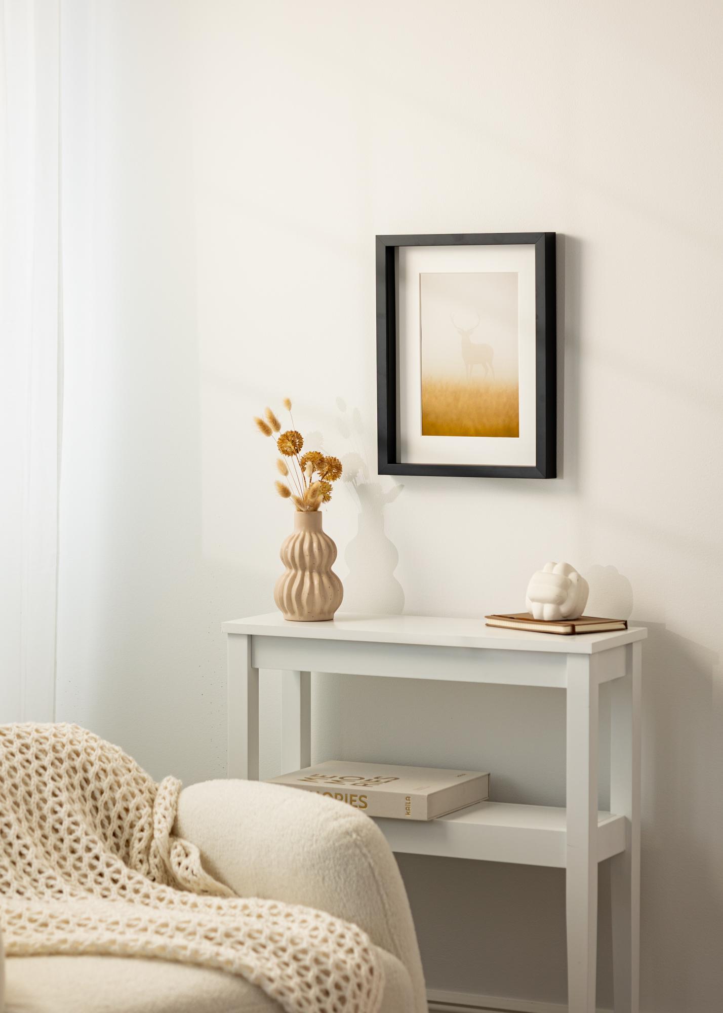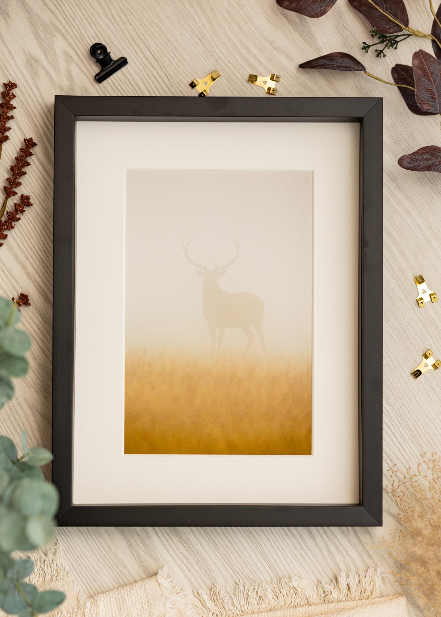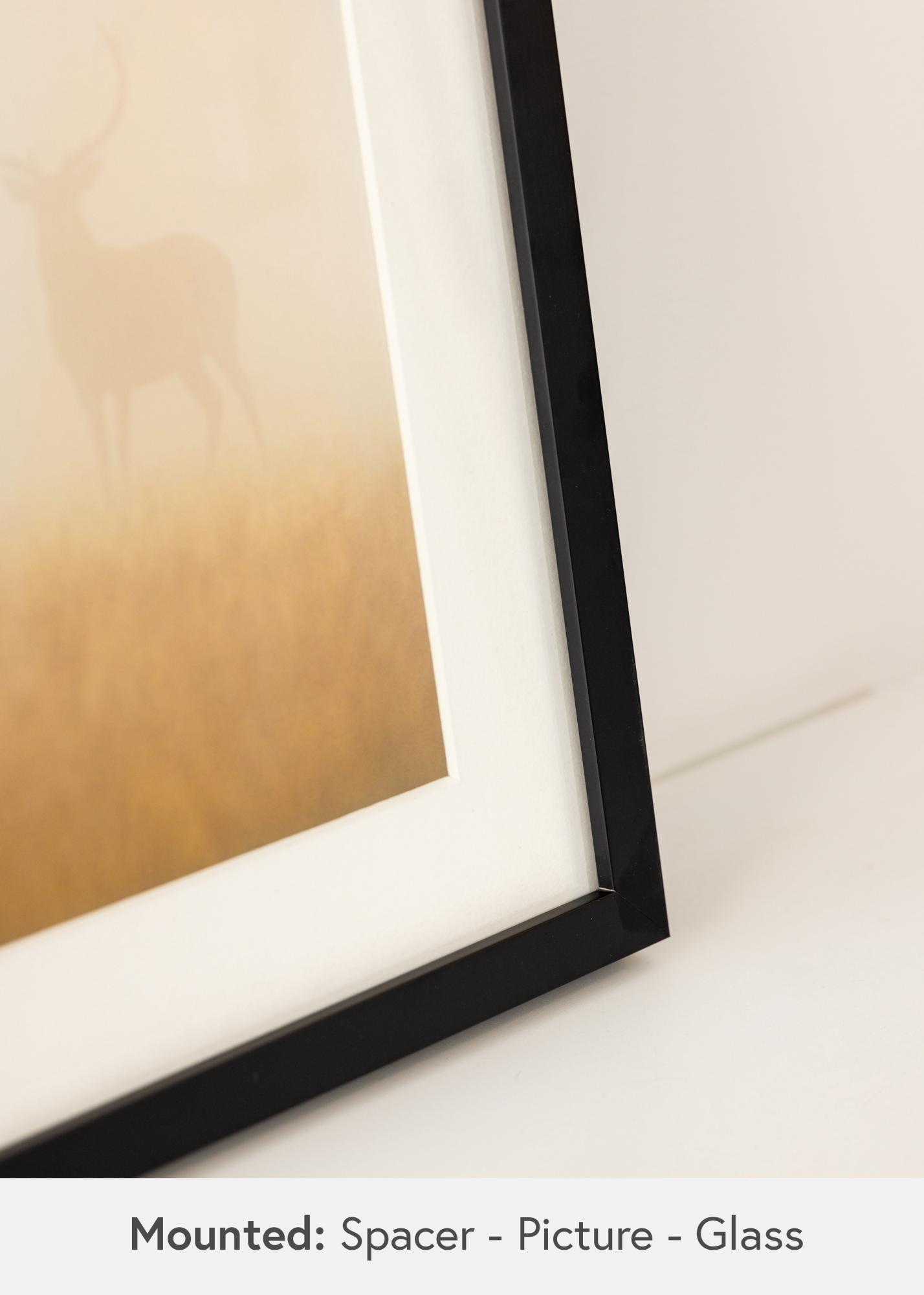 A fenyőből készült képkeret tartós és könnyű, ami megkönnyíti a kezelést és felszerelést. A Balder Fekete egyedülálló jellemzője a mellékelt távtartó léc. Ez a léc egy rést hoz létre az üveg és a kép között, ami mélységi hatást kelt, és lehetővé teszi a kép mélyebb elhelyezését a keretben, vagy lebegve az üveg és a hátlap között. Ez egy letisztult és exkluzív keretezést biztosít, amely valóban kiemeli a motívumot.