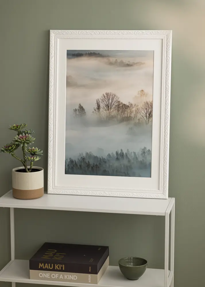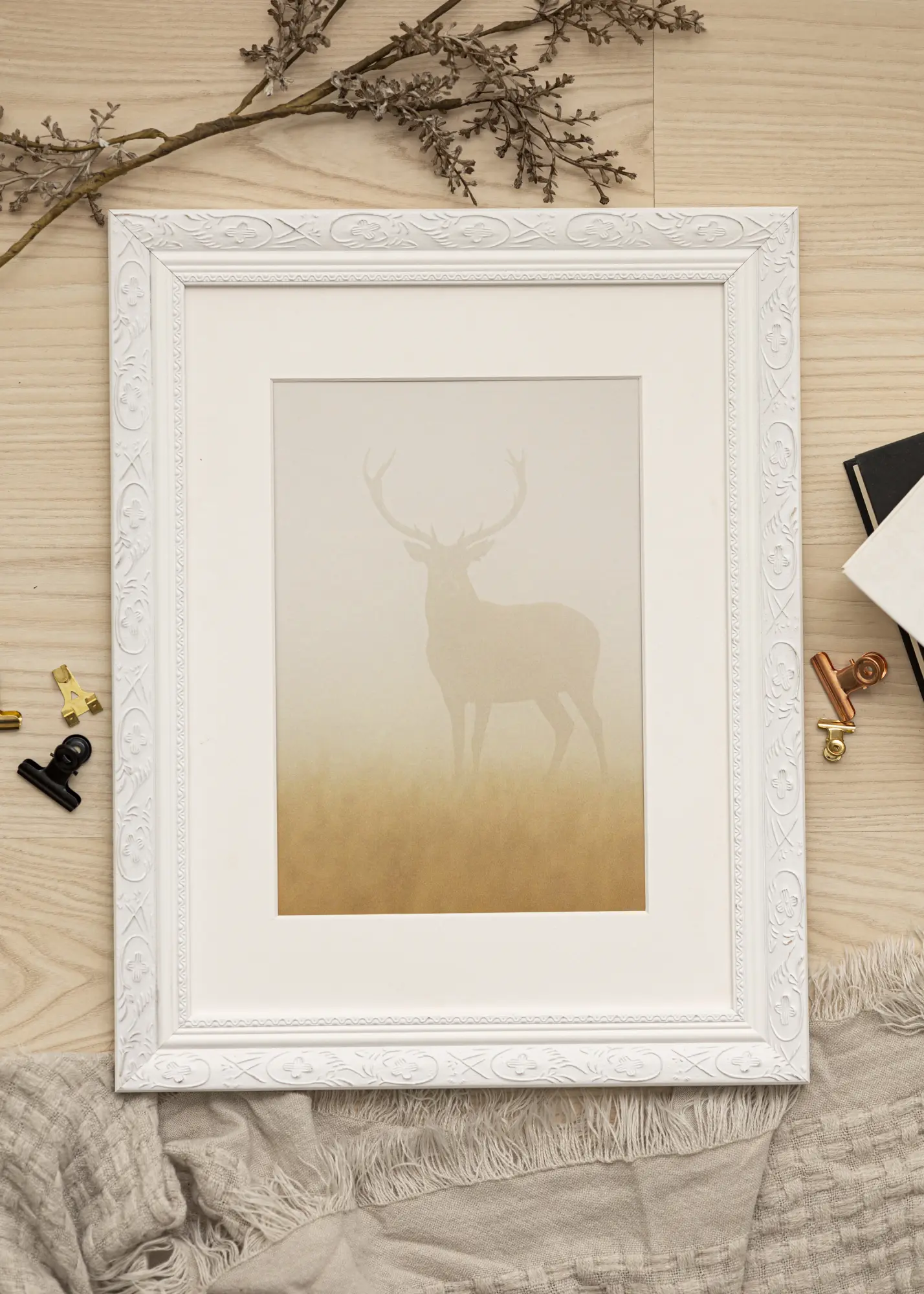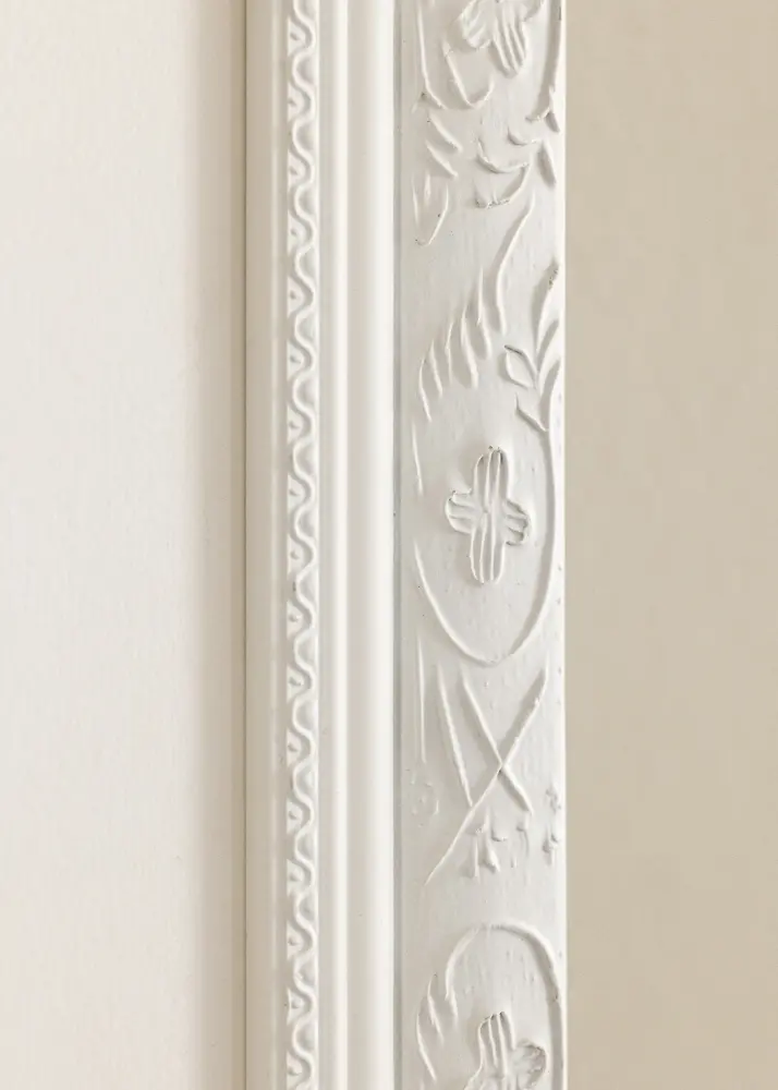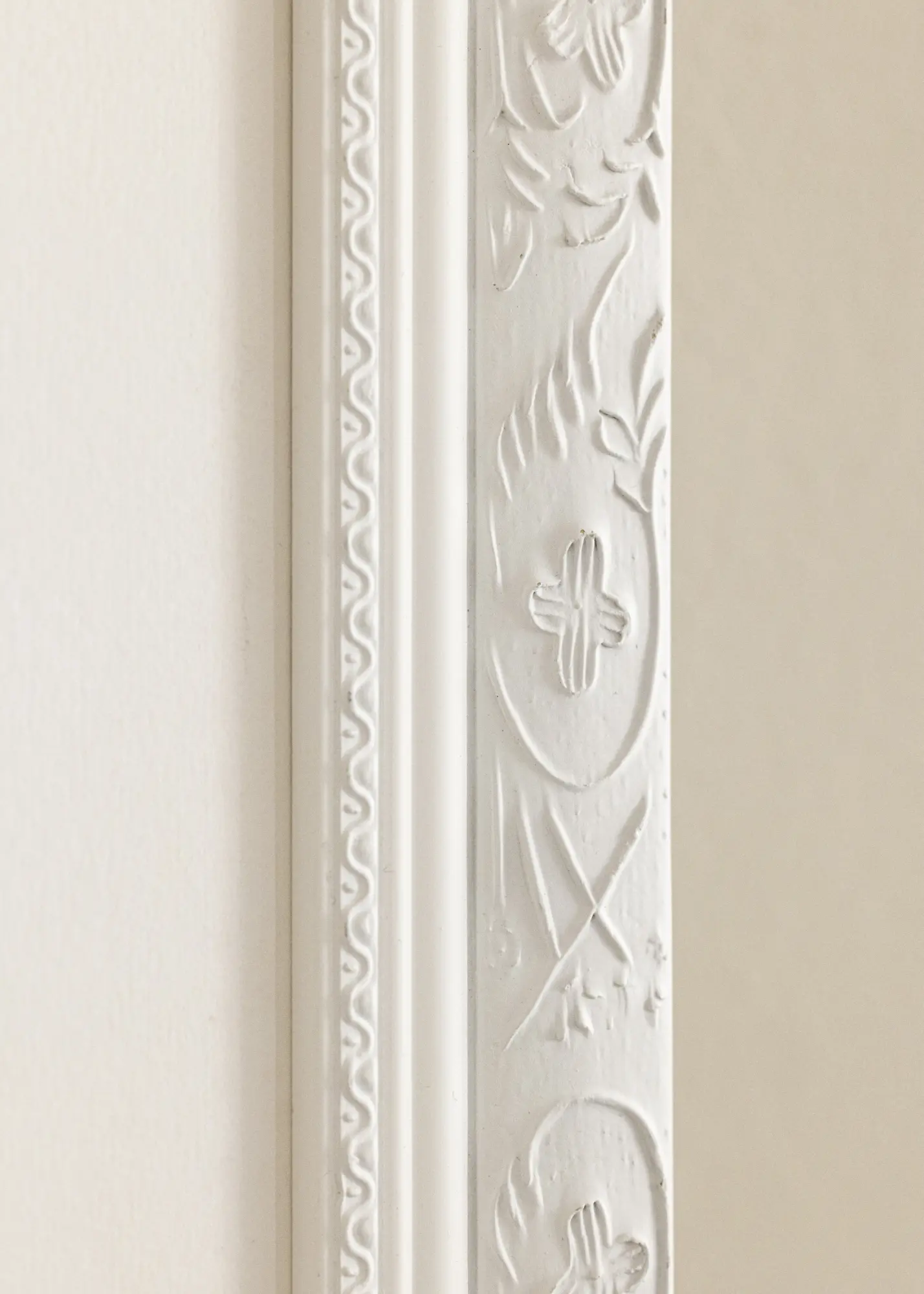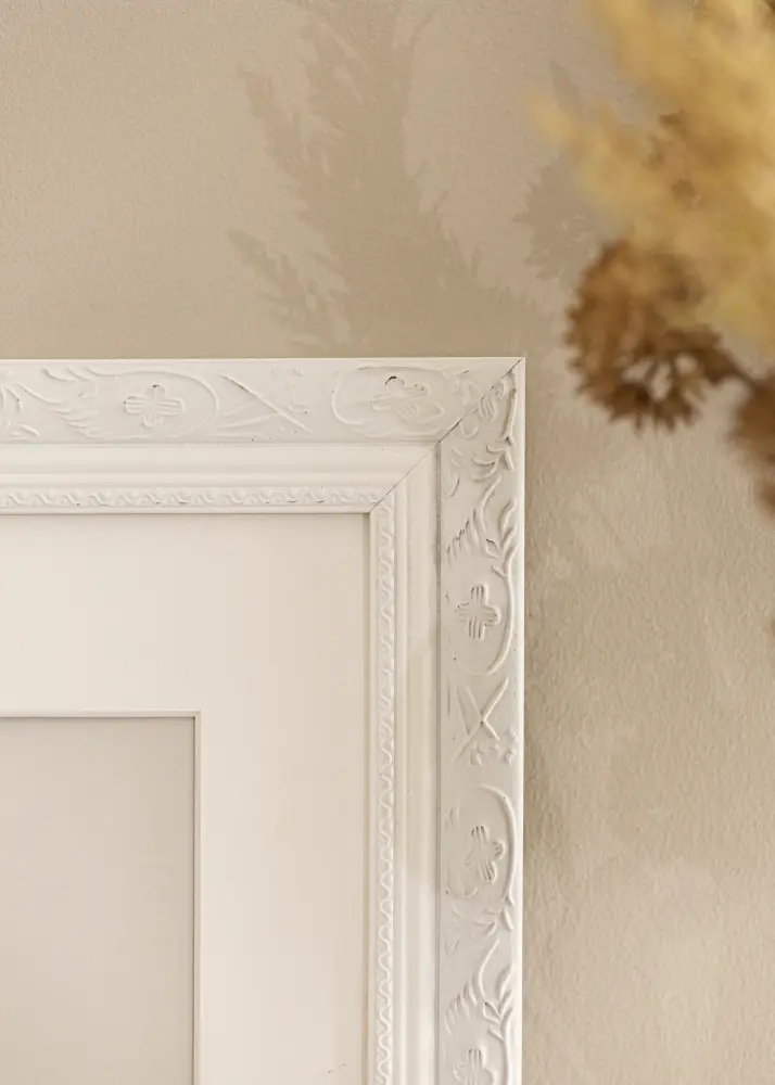 A Barock Vit egy nagyszerű faképkeret retró stílusban, gyönyörű díszítésekkel. Tökéletes, ha széles, gyönyörű, régimódi stílusú faképkeretet keresel. Kiváló választás a kedvenc nagyításaidhoz.