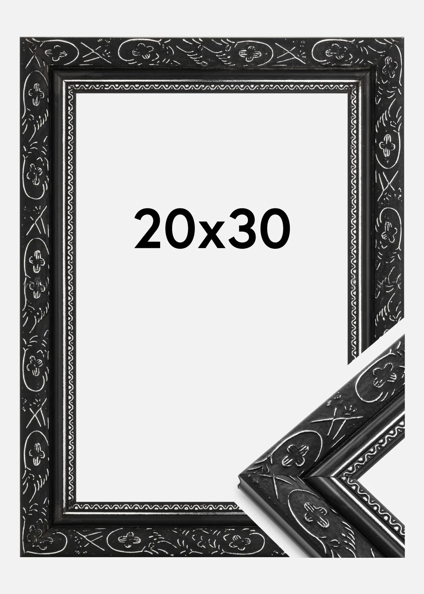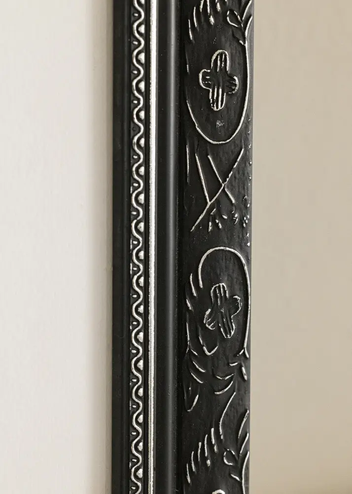 A Barokk Fekete egy nagyszerű fa képkeret retró stílusban, gyönyörű díszítésekkel, ezüst elemekkel a motívum közelében. Tökéletes választás, ha széles, szép, régies stílusú fa képkeretet keresel. Kiváló választás a kedvenc nagyításaidhoz.
