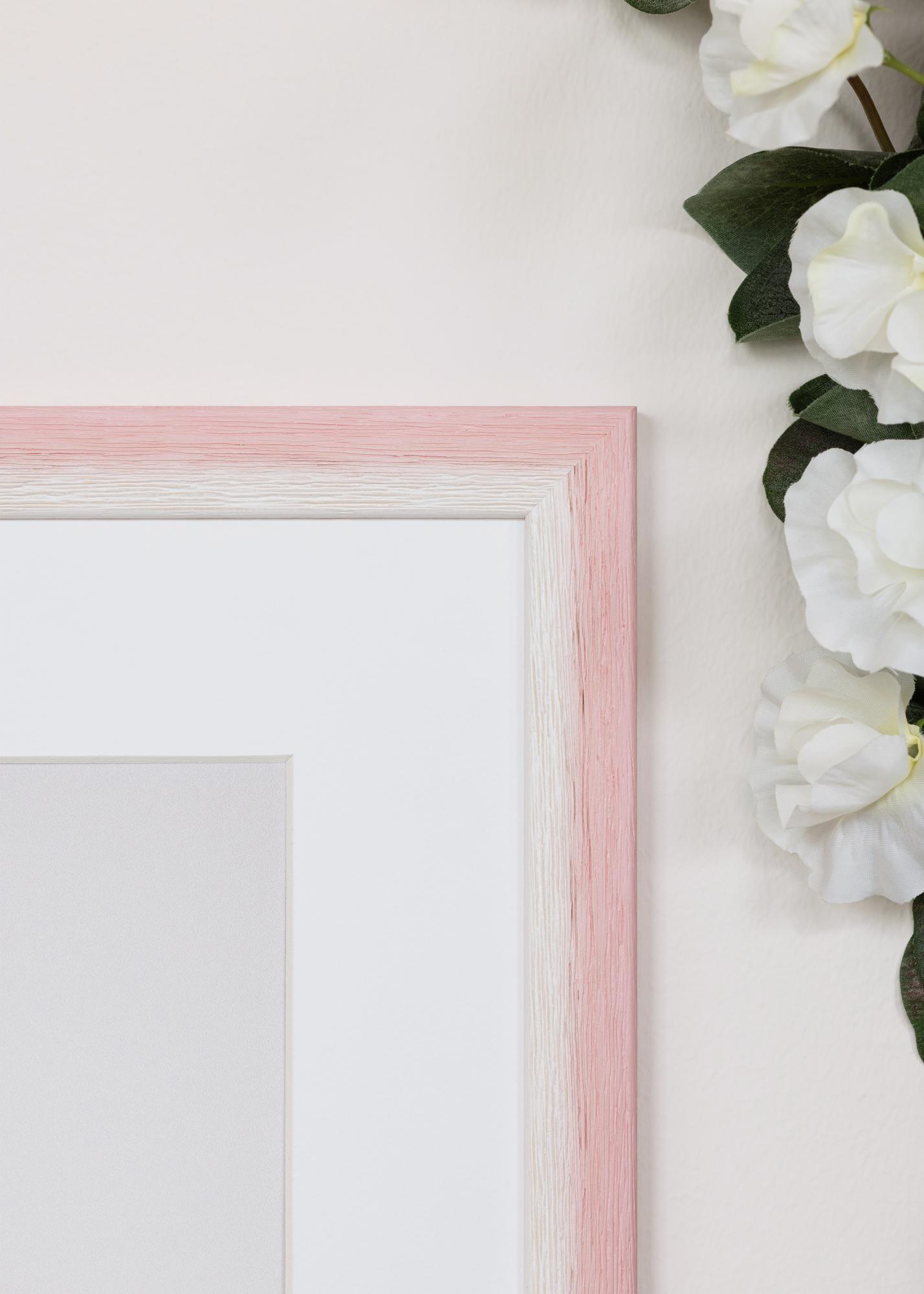 Ez a 40x50 cm-es fotorámia a modern design és a klasszikus elegancia tökéletes kombinációja. Lágy, világos rózsaszín árnyalatával és finoman fehérre pácolt fa textúrájával letisztult, visszafogott hangulatot teremt, amelyben a kép kerül a középpontba. A 23 mm-es keskeny profil és a 13 mm-es mélység miatt a Keret kiválóan illik modern és skandináv enteriőrökbe egyaránt.