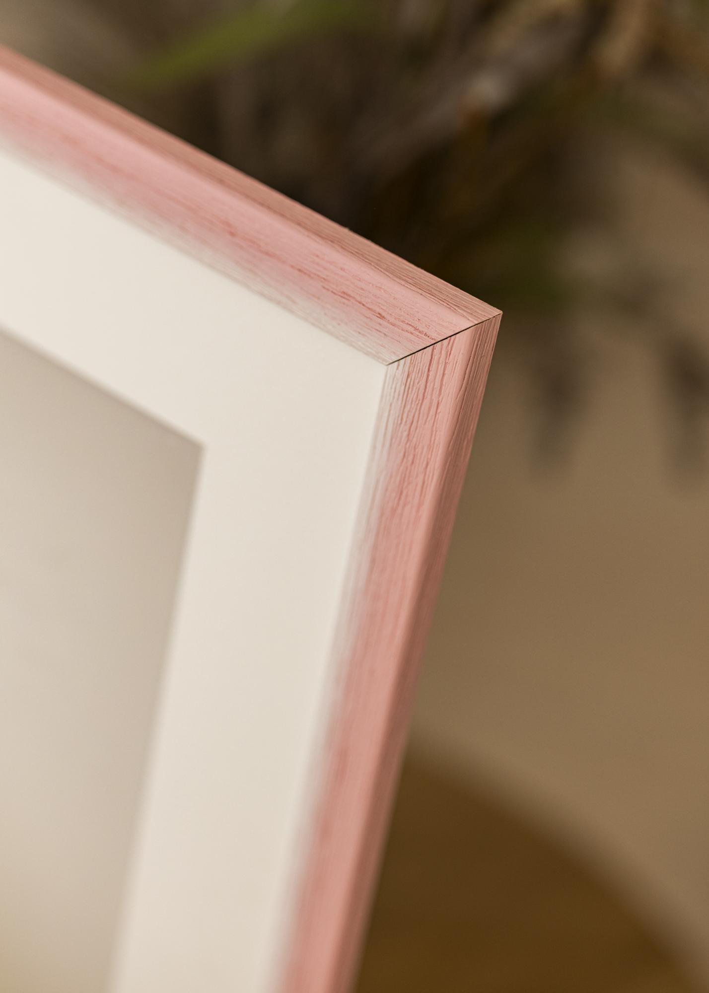 Ez a képkeret egyedi színátmenettel rendelkezik, amely egy világos, szinte fehér árnyalatról tompa pasztell rózsaszín árnyalatra változik. A kiemelkedő famintázat mély erezetekkel rusztikus és természetes érzést kelt, így kiváló választás mind a modern, mind a hagyományos belső terekhez. A színek közötti finom átmenet kézi festett hatást kelt, amely élénk kifejezést ad a keretnek.