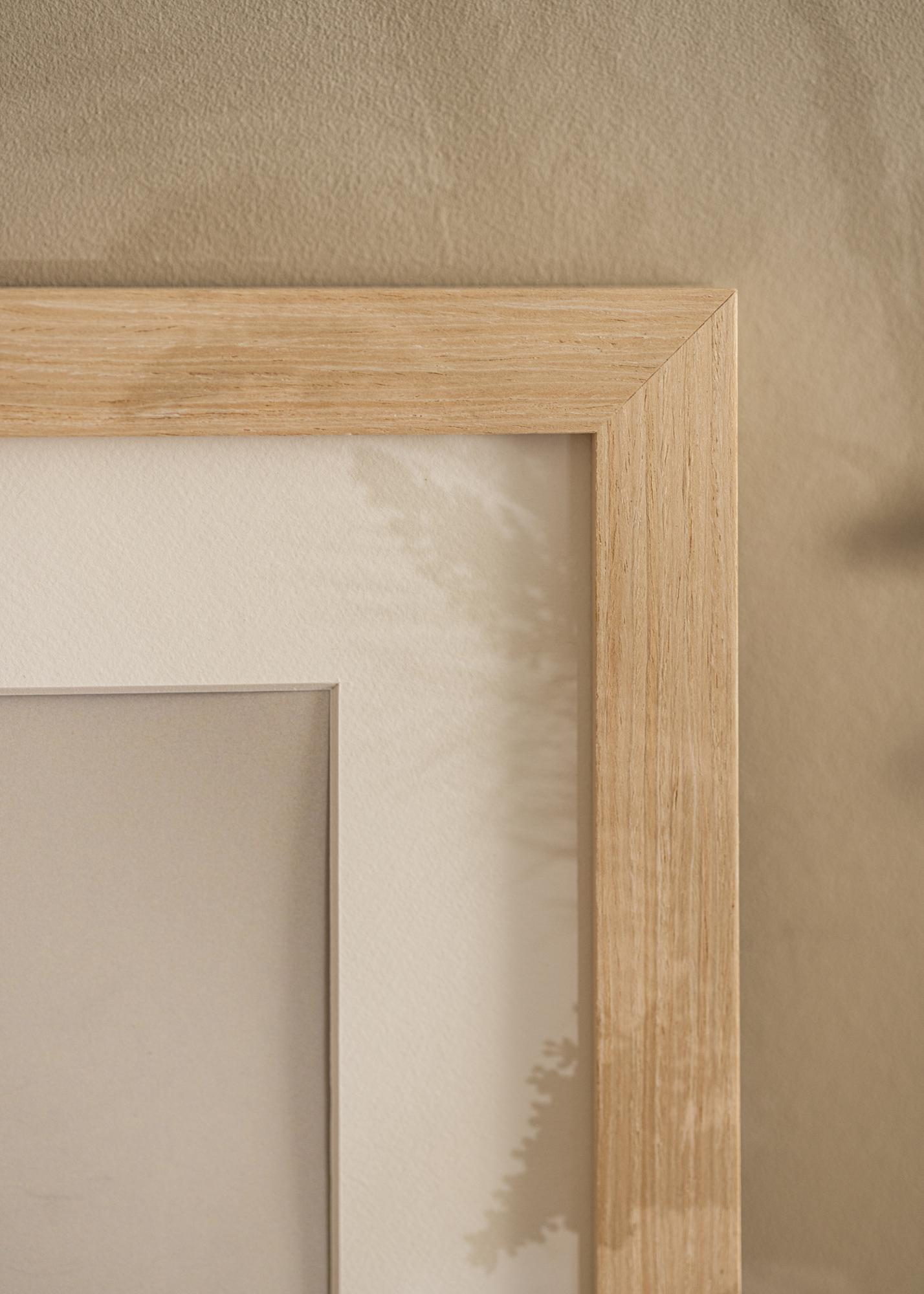 A keret 28 mm széles kereteslécet és 33 mm mélységet kínál, ami stabil és masszív érzést biztosít. Fenyőből készült, ez a képkeret mind tartós, mind pedig stílusos. A felület selyemmatt befejezéssel rendelkezik, amely kiemeli a textúrát anélkül, hogy fénysugarakat verne vissza, így a képeid mindig a figyelem középpontjában maradnak. Az egyenes profil hozzájárul egy letisztult és harmonikus megjelenéshez.