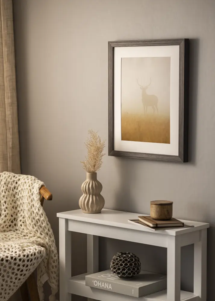 Minimalista dizájnjának köszönhetően, díszítőelemek nélkül, a Cotswold Szürke keret modern és kifinomult benyomást kelt. Mivel a keret méretre szabott, a rendelés után nem vonhatja vissza vásárlását, ezért győződjön meg róla, hogy a megfelelő méretekkel rendelkezik, mielőtt megrendeli. Ez a képkeret tökéletes választás azok számára, akik stílusos és testre szabható megoldást keresnek a képeik számára.