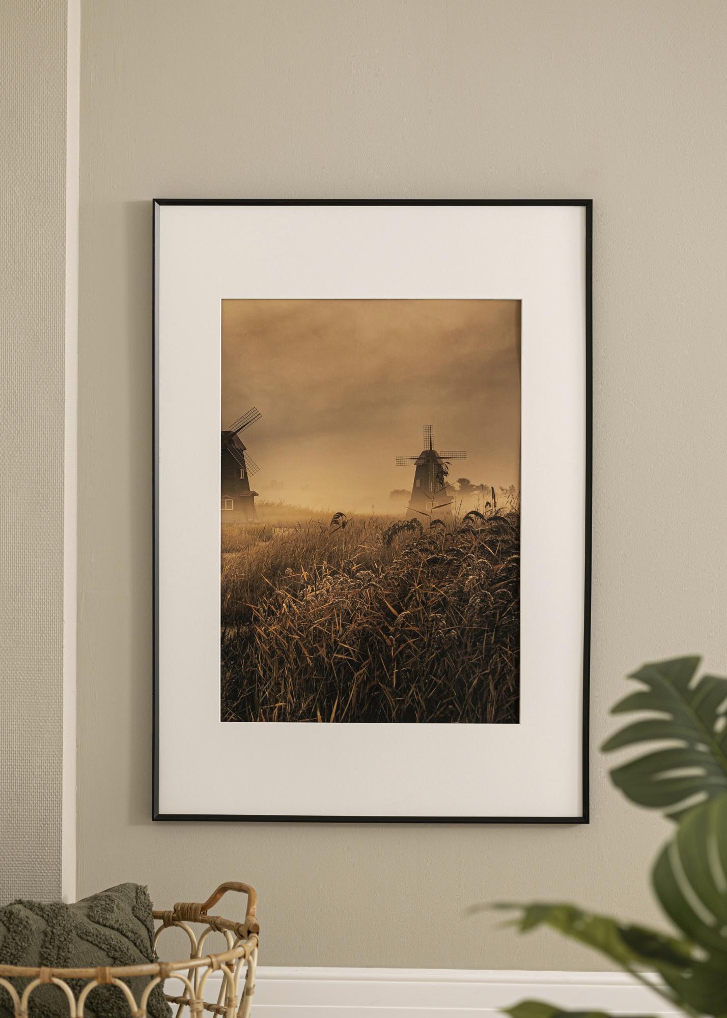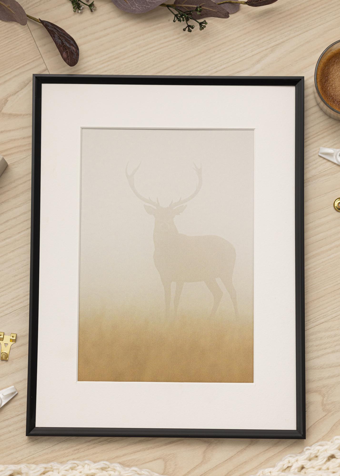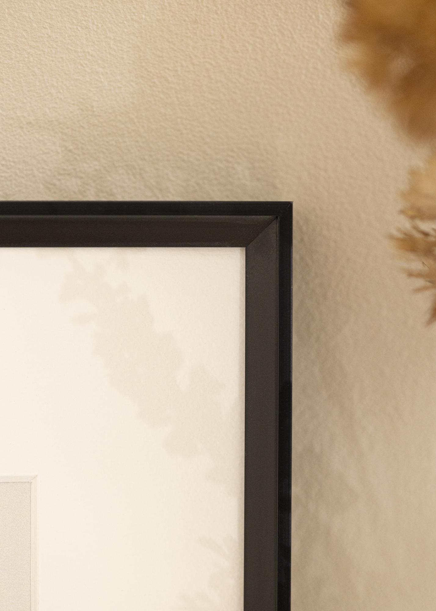 Ez egy fekete képkeret modern dizájnnal, letisztult és matt keretléccel, amely mindössze 10 mm széles. A keretléc rendelkezik egy 45°-os szögben befelé hajló éllel, ami a motívum felé néz, és divatos megjelenést kölcsönöz a képnek. A hatásos keretezést tovább erősíti a léc 18 mm-es mélysége, amely szintén biztosítja a keret masszív érzését.