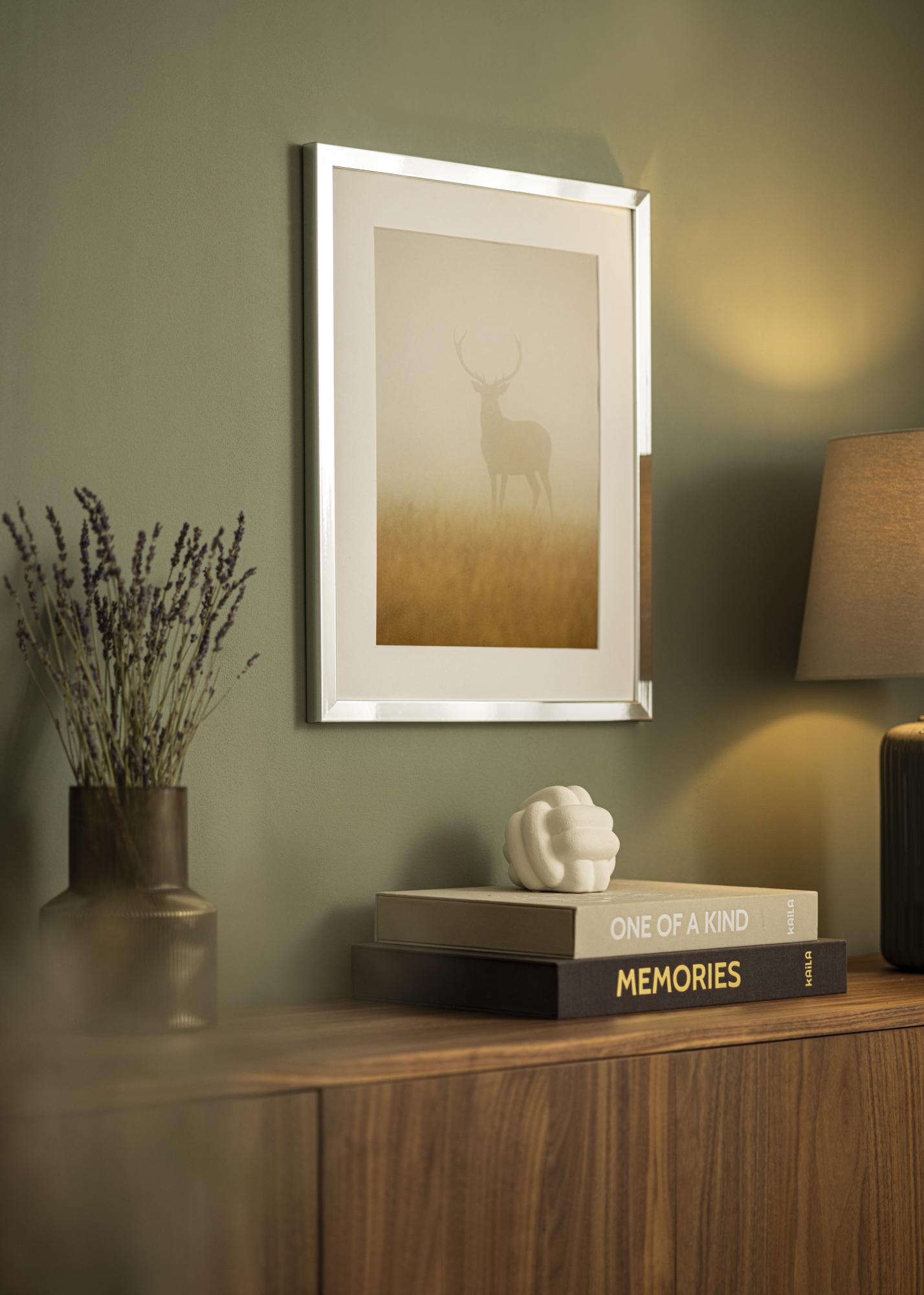 A Devon Silver egy méretre szabott képkeret, amelyet precizitással és gondossággal gyártunk. Elegáns ezüstös felületével és tükörfényes textúrájával ez a képkeret úgy veri vissza a fényt, hogy modern és elegáns hangulatot teremtsen otthonában. A sima fémes felület visszatükrözi a környezetét, és dinamikus fényt eredményez a fény szögétől függően.
