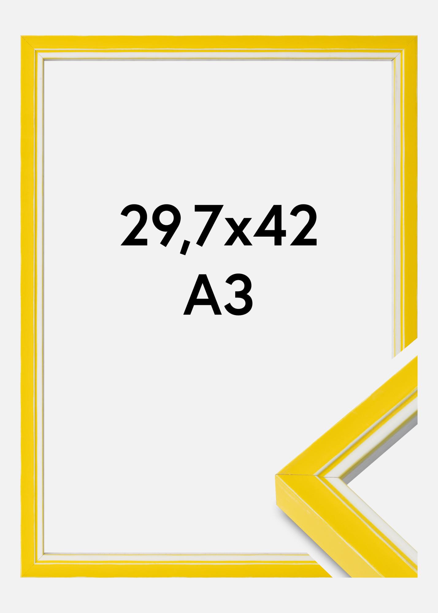 Adjon színt a falainak ezzel a figyelemfelkeltő 29,7x42 cm-es (A3) képkerettel. A sárga és fehér játékos kombinációjával ez a fényképkeret extra dimenziót ad műalkotásának vagy fotójának. Nemcsak vizuális kiemelést kínál, hanem praktikus is, kristálytiszta és törésálló akrilüveggel, amely optimálisan védi a képeit.