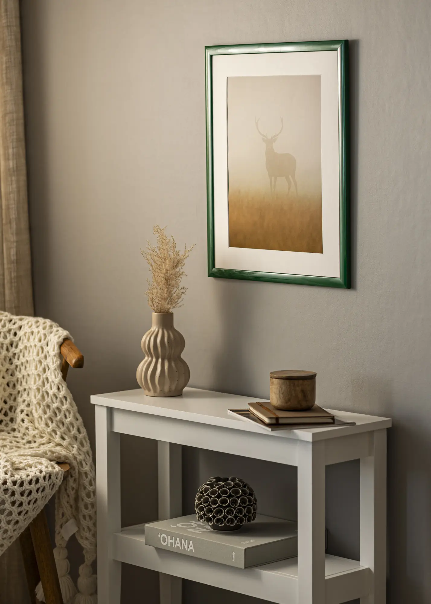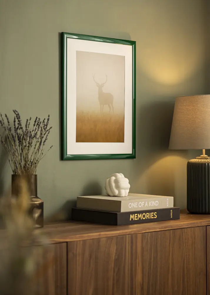 Fedezze fel a Dorset Zöld egyedi méretre gyártott képkeretünket, amely tökéletes megoldás arra, hogy képeinek személyes érintést adjon. Mélyzöld színének és magasfényű kivitelének köszönhetően ez a képkeret elegáns és élénk felületet biztosít, amely valóban magára vonja a figyelmet. A lakkozott felület fokozza a szín intenzitását, és dinamikusan tükrözi a fényt, ami modern és letisztult érzést ad otthonának.