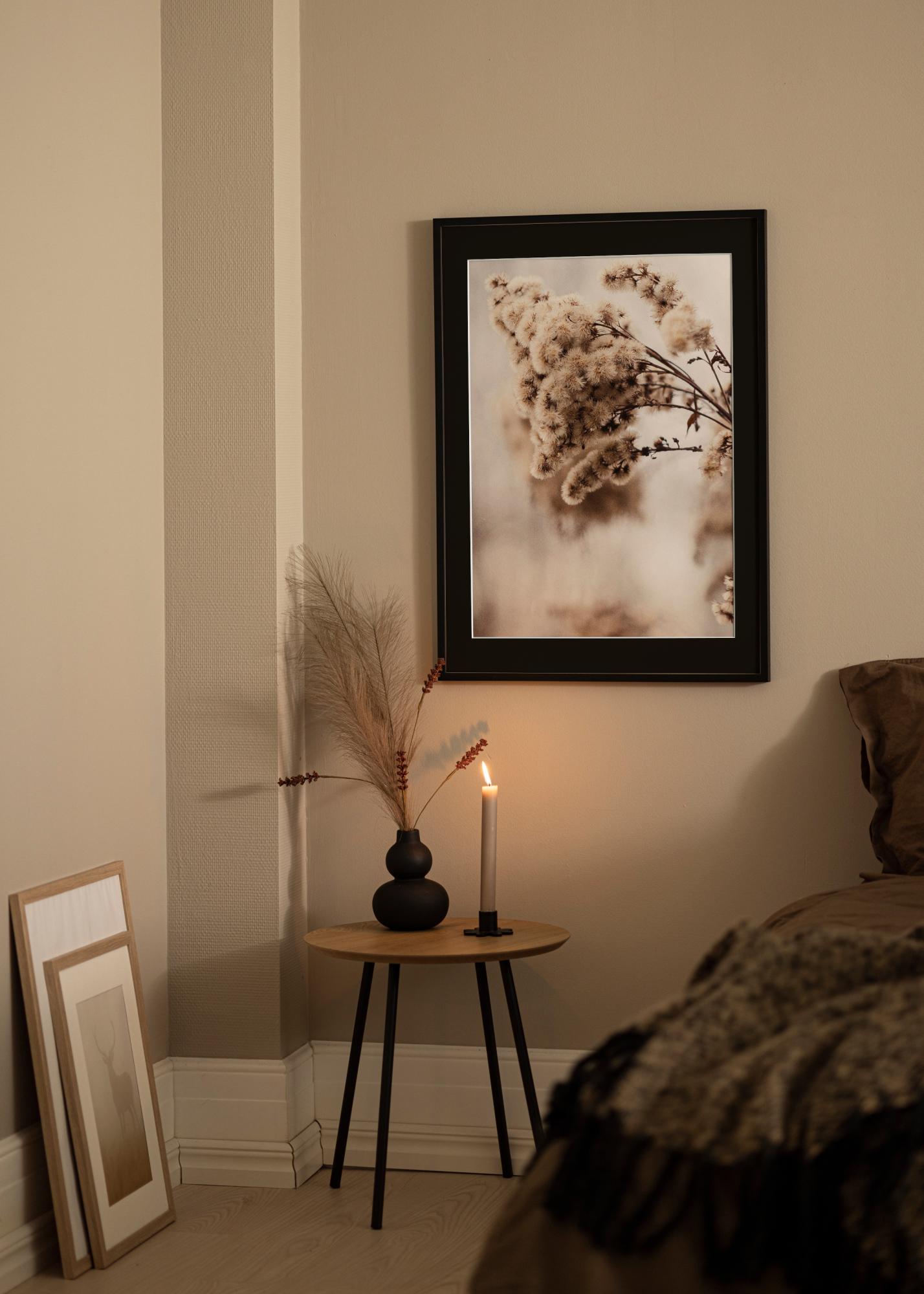 A fekete paszpartu fokozza a kontrasztot és a néző figyelmét a képre összpontosítja. A keret praktikus fém akasztókkal van ellátva, készen áll arra, hogy a falra szereljék, akár vízszintes, akár függőleges formátumban.
