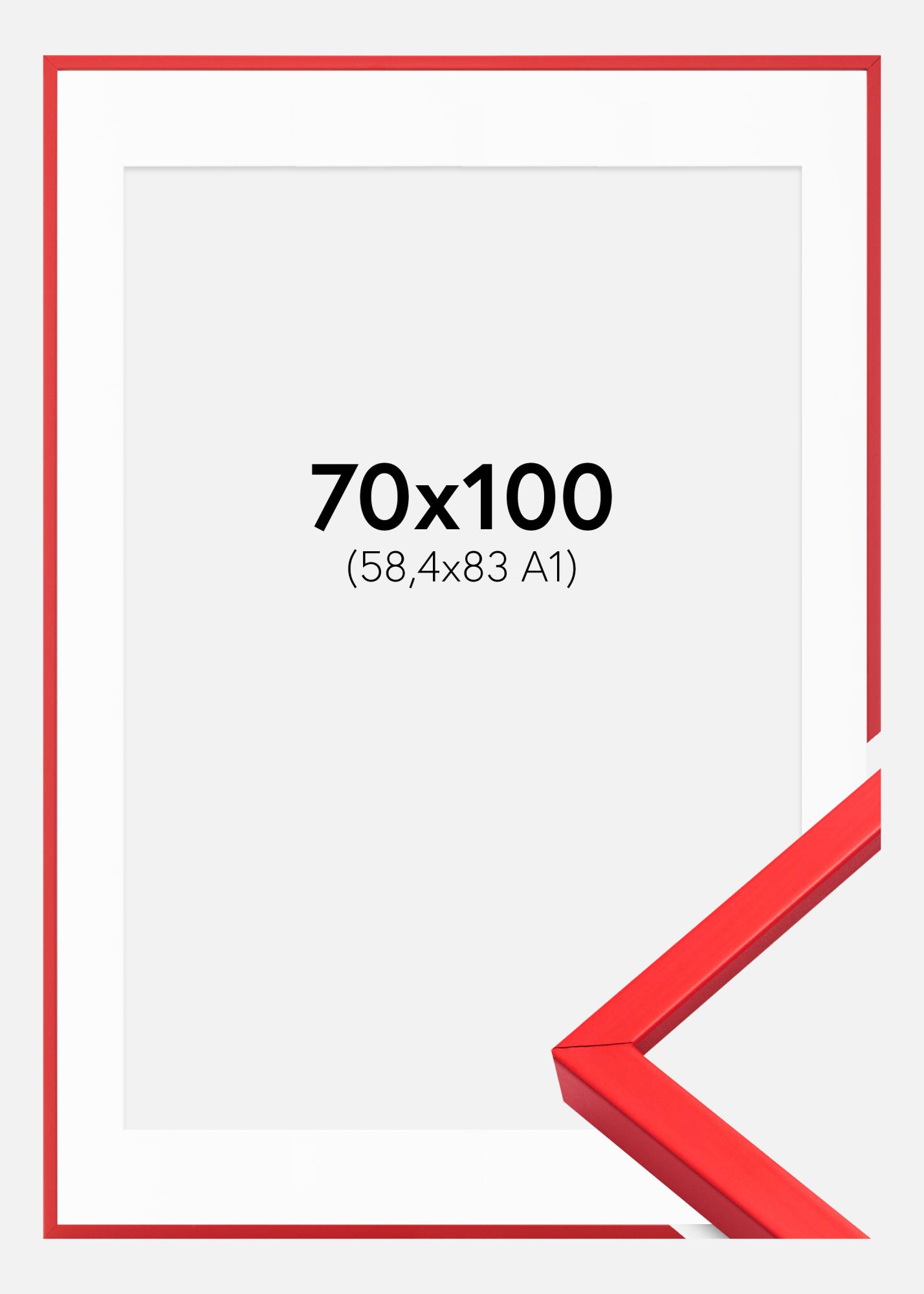 Alakítsa át műalkotását vagy kedvenc fényképét elegáns figyelemfelkeltővé kiváló minőségű piros keretünkkel, fehér passepartout-val. Ez a keret tökéletes az A1 méretű (59,4x84 cm) képek kiemelésére, és a keret 12 mm széles és 20 mm mély profiljának matt piros felülete jellegzetes és modern érzést kölcsönöz faldekorációjának.