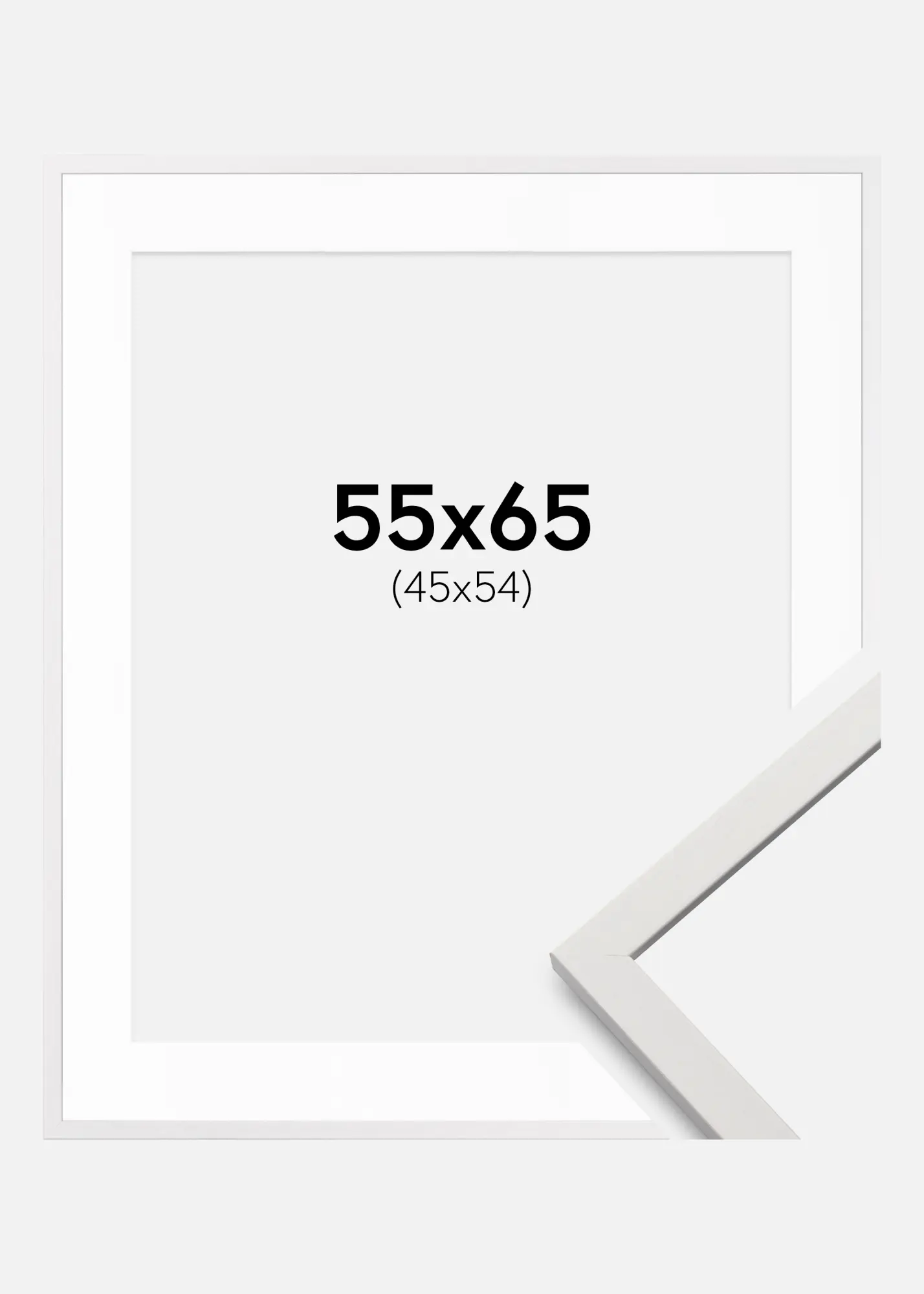 Ez az elegáns fehér keret passepartout-tal tökéletes arra, hogy kiemelje kedvenc 46x55 cm-es képeit. A letisztult matt felület és a 13 mm-es keskeny szélessége modern és kifinomult benyomást kelt.