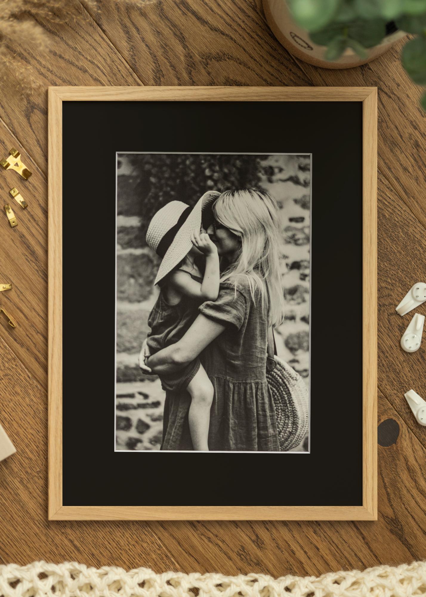 Adj elegáns keretet kedvenc képeidnek, amelyhez fekete passepartout tartozik. Ez a keret, a tiszta vonalaival és matt fa felületével, kifinomult megjelenést kölcsönöz bármely helyiségnek. A 13 mm szélességgel és 11,5 mm mélységgel tervezett keret a 32,9x48,3 cm-es (A3+) képméretet kiemeli és védi.