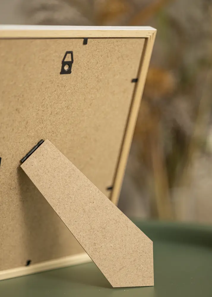 Ez a keret float üveggel rendelkezik, amely jobb fény tulajdonságú üveg, egyenletes felületű, és 40-45% UV-védelmet nyújt. A barna hátsó rész MDF-ből készült, és fel van szerelve függesztőfülekkel mind függőleges, mind vízszintes elhelyezéshez. A hátsó részt kis fém tüskék tartják a helyén, amelyeket könnyen fel lehet hajlítani, amikor be szeretné helyezni fényképét a keretbe.