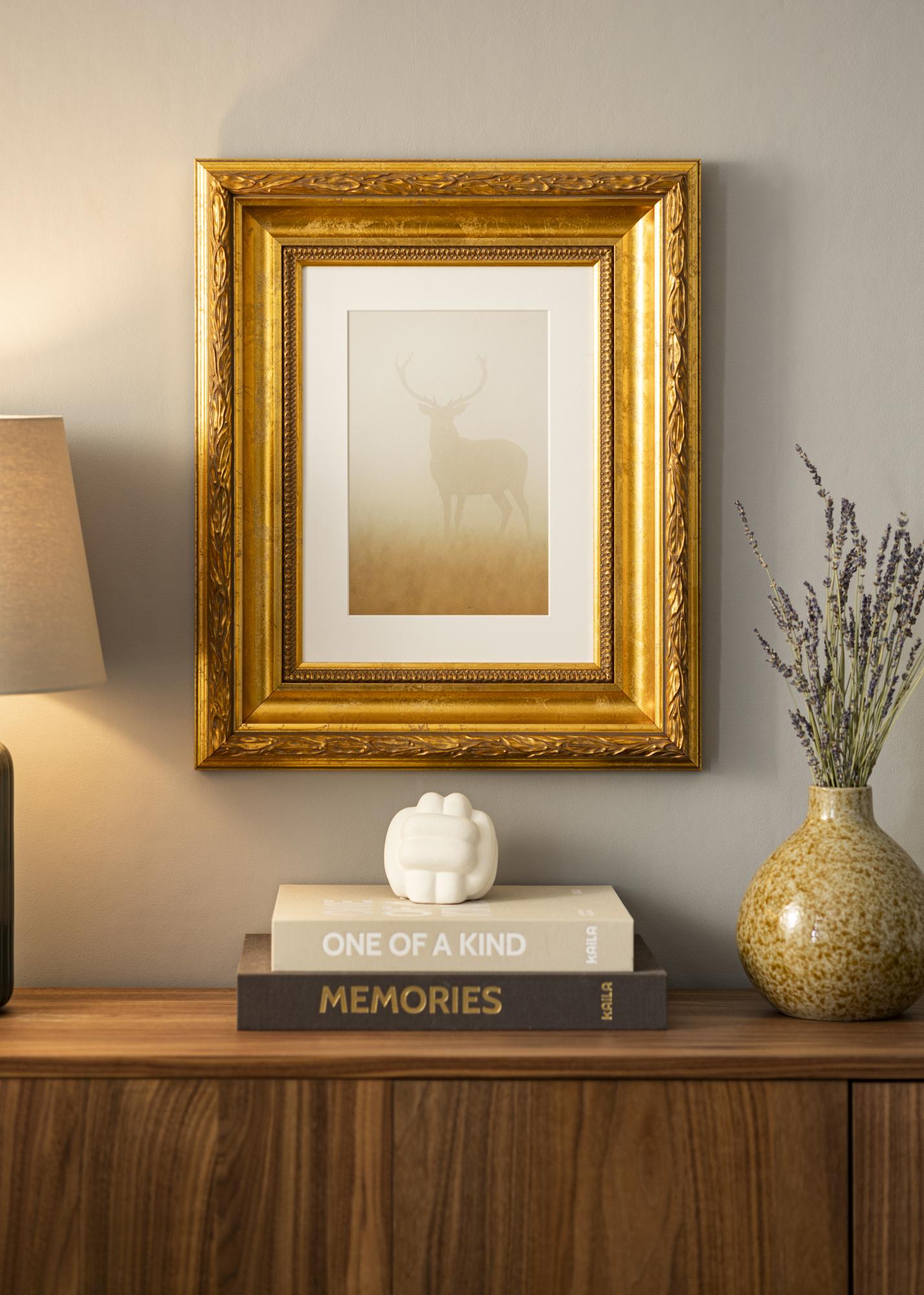 A Egypt Ornament Gold keret fából készült, ami természetes és tartós érzetet ad. Az elegáns patina kiemeli a díszítéseket, így ez a képkeret kiváló választás mind modern, mind hagyományos belső terekhez. Akár a nappaliban, hálószobában vagy irodában helyezed el, ez a keret vonzza a tekintetet, és a lehető legjobb módon emeli ki képeidet.