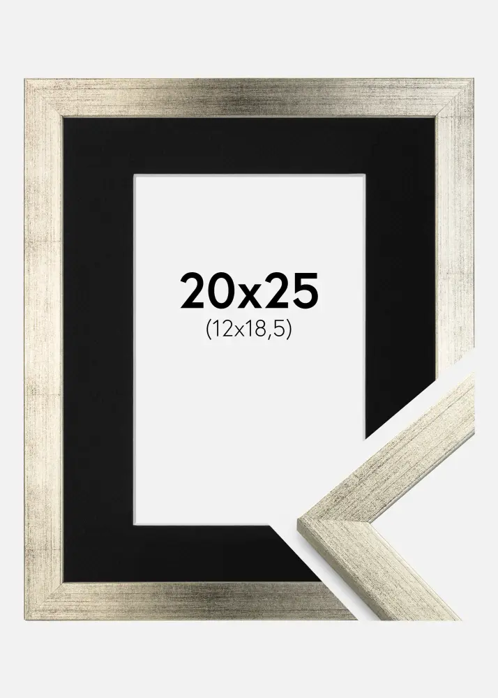 Keret Elegáns Ezüst 20x25 cm - Paszpartu Fekete 13x19,5 cm