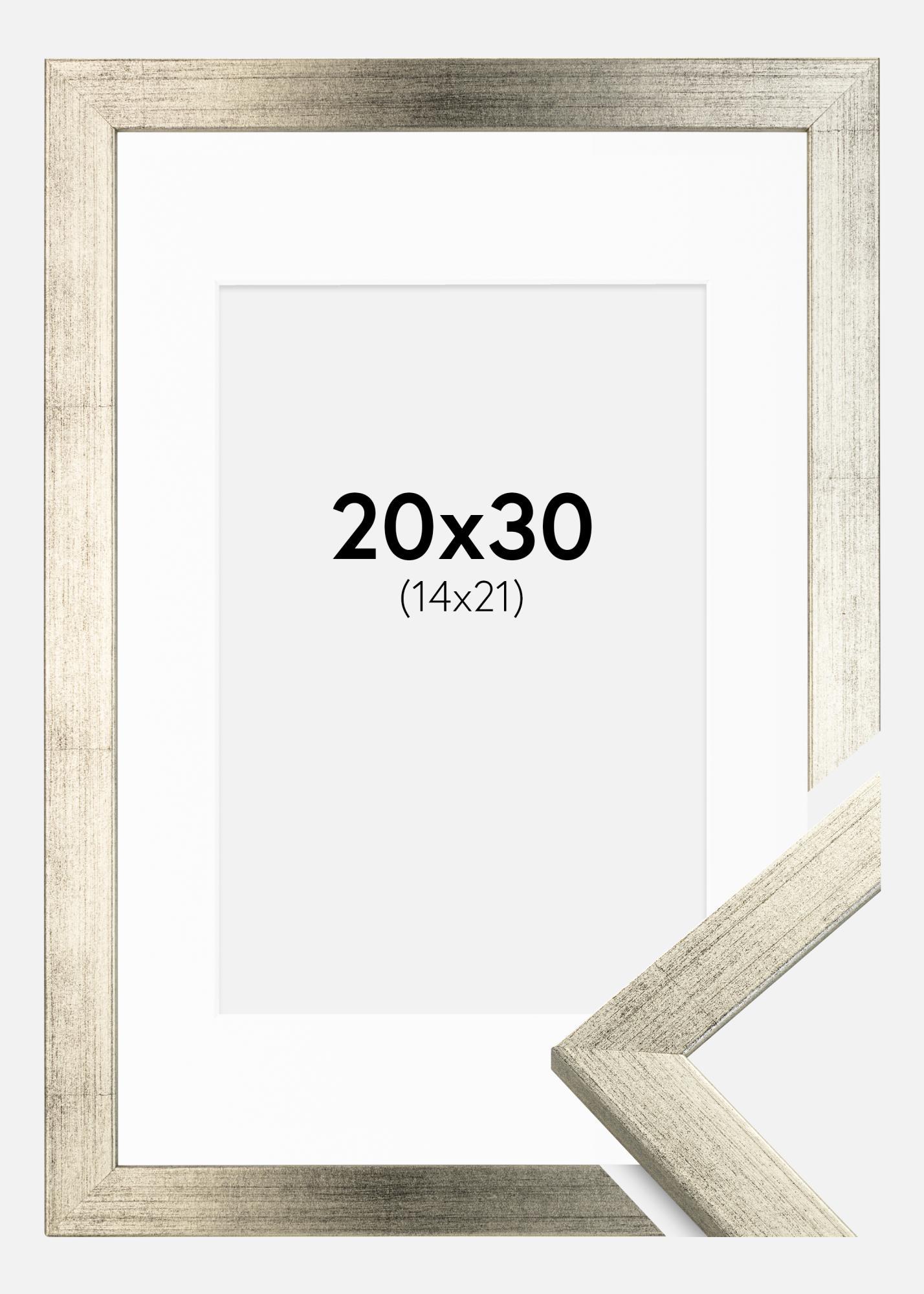 Keret Elegáns Ezüst 20x30 cm - Paszpartu Fehér 15x22 cm