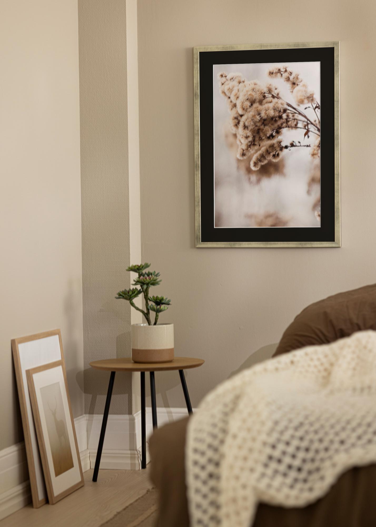 A keret karcsú, 20 mm-es szélessége és matt felülete modern megjelenést kölcsönöz faldekorációnak. Ezenkívül a keret praktikus fém akasztókkal van ellátva a hátoldalon, így könnyen felakaszthatja képét vízszintesen és függőlegesen is, az egyedi tér és a dizájnpreferenciák szerint.