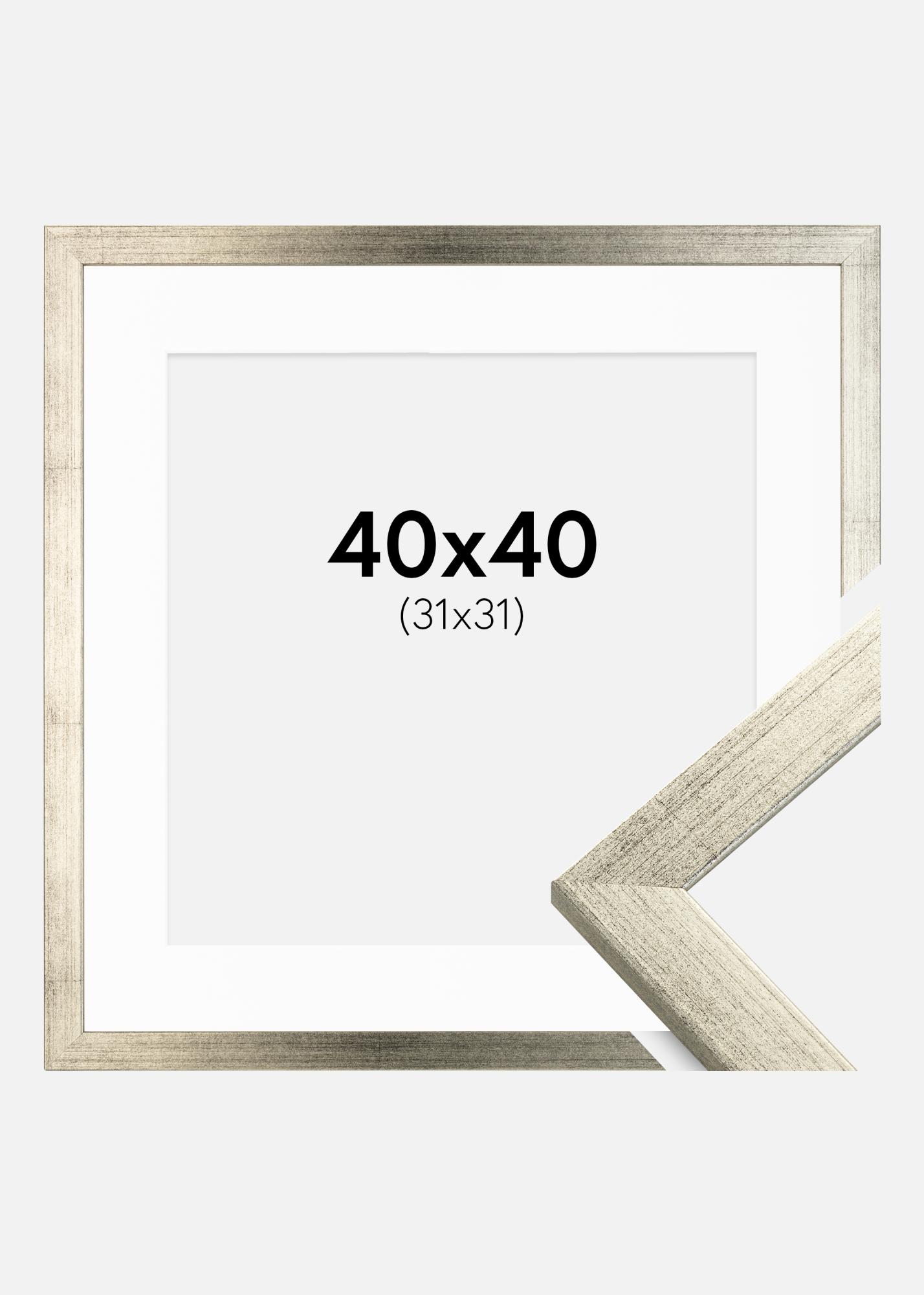 Keret Elegáns Ezüst 40x40 cm - Paszpartu Fehér 32x32 cm