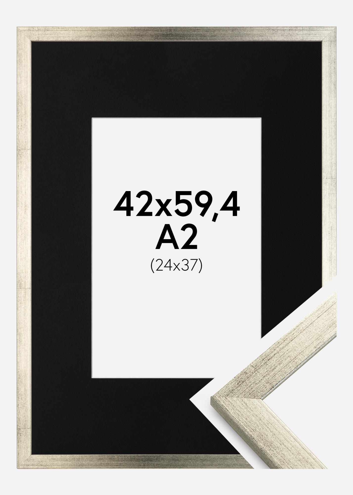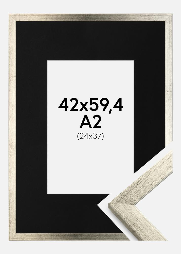 Keret Elegáns Ezüst 42x59,4 cm (A2) - Paszpartu Fekete 25x38 cm