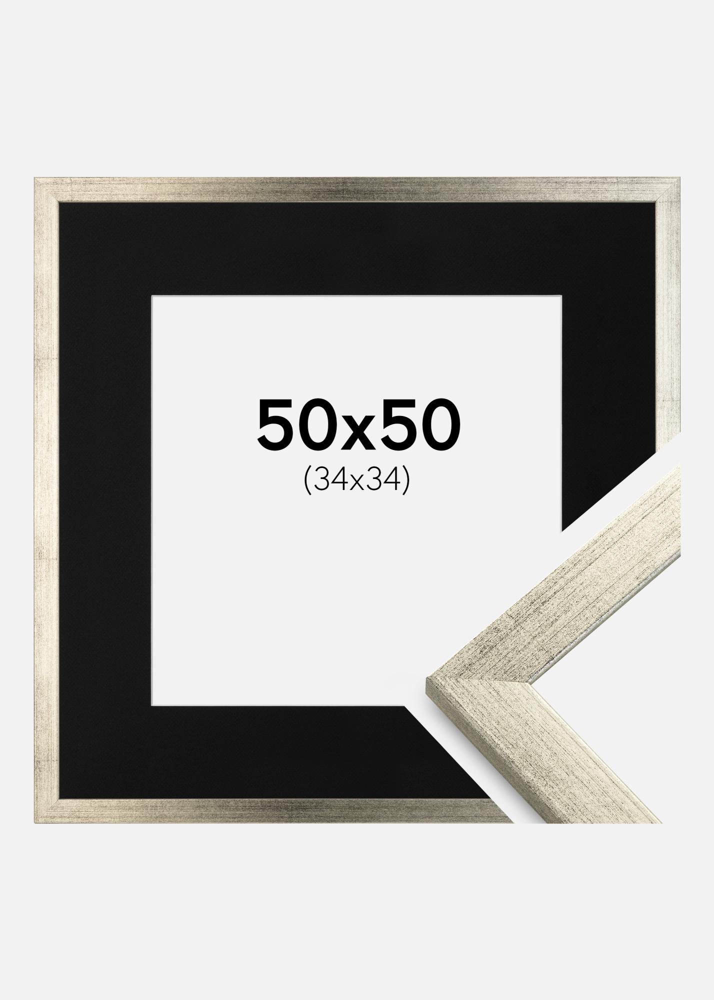 Keret Elegáns Ezüst 50x50 cm - Paszpartu Fekete 35x35 cm