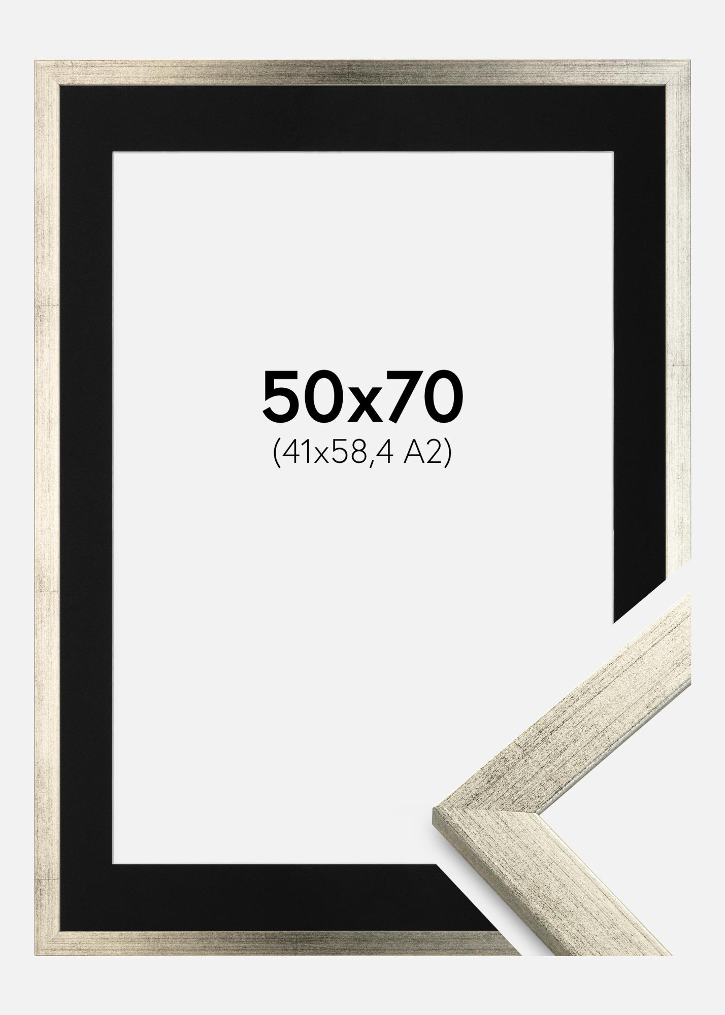 Keret Elegáns Ezüst 50x70 cm - Paszpartu Fekete 42x59,4 cm (A2)