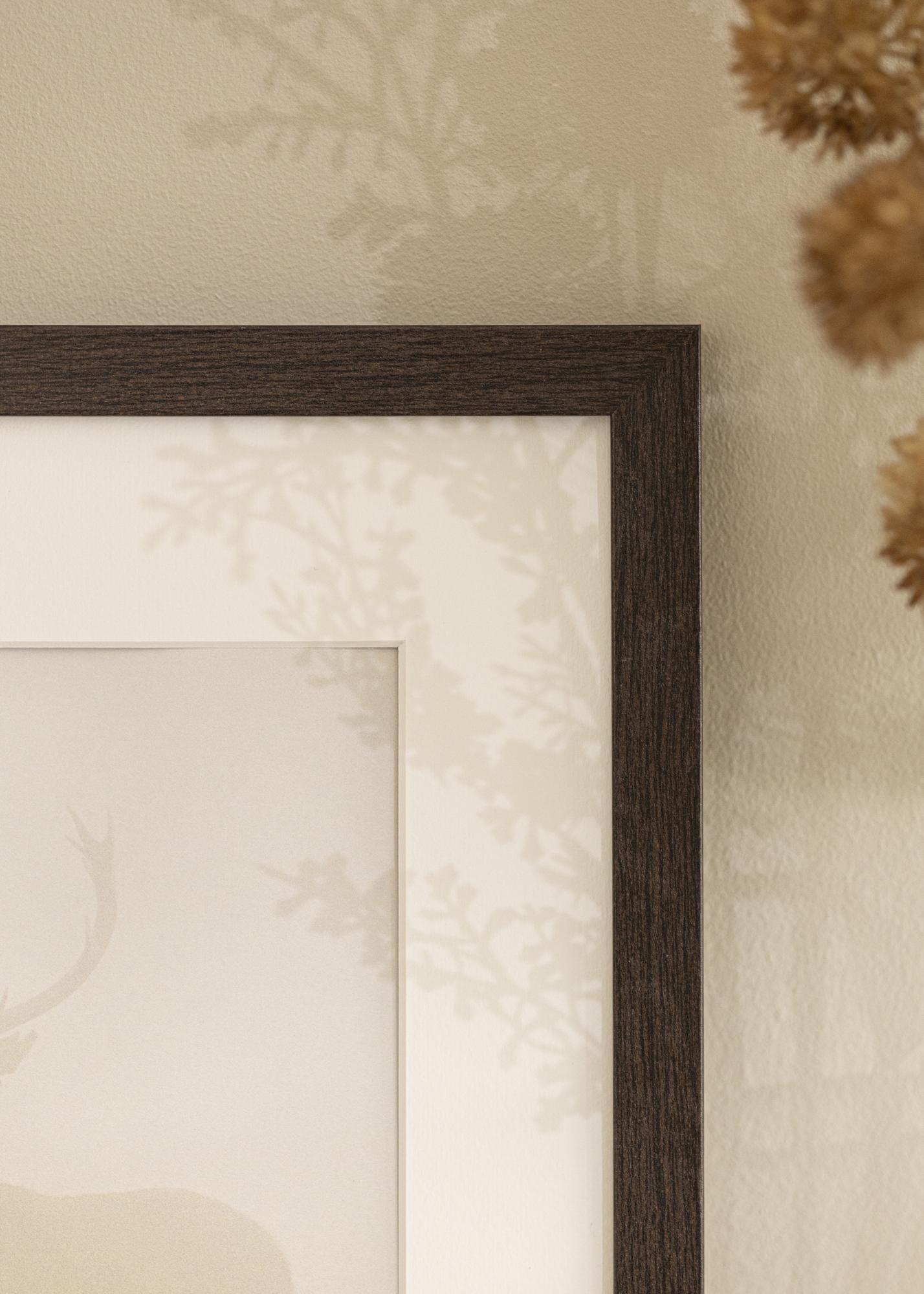 Ez egy kiváló minőségű keret sötétbarna fából, amely hasonlít a tömör wenge fához. A keretléc 20 mm széles és 14 mm mély, ezek a méretek teszik ezt a keretet masszív és stabil fényképkeretté, amely szépen keretezi a motívumát. A keret hátoldalán falirögzítők vannak, amelyek lehetővé teszik, hogy a képet függőlegesen és vízszintesen is felakaszthassa. A keret fenyőből készült, és valódi üveggel rendelkezik. A letisztult Wenge többféle méretben kapható, ezek közül ez a példány 40x60 cm-es.