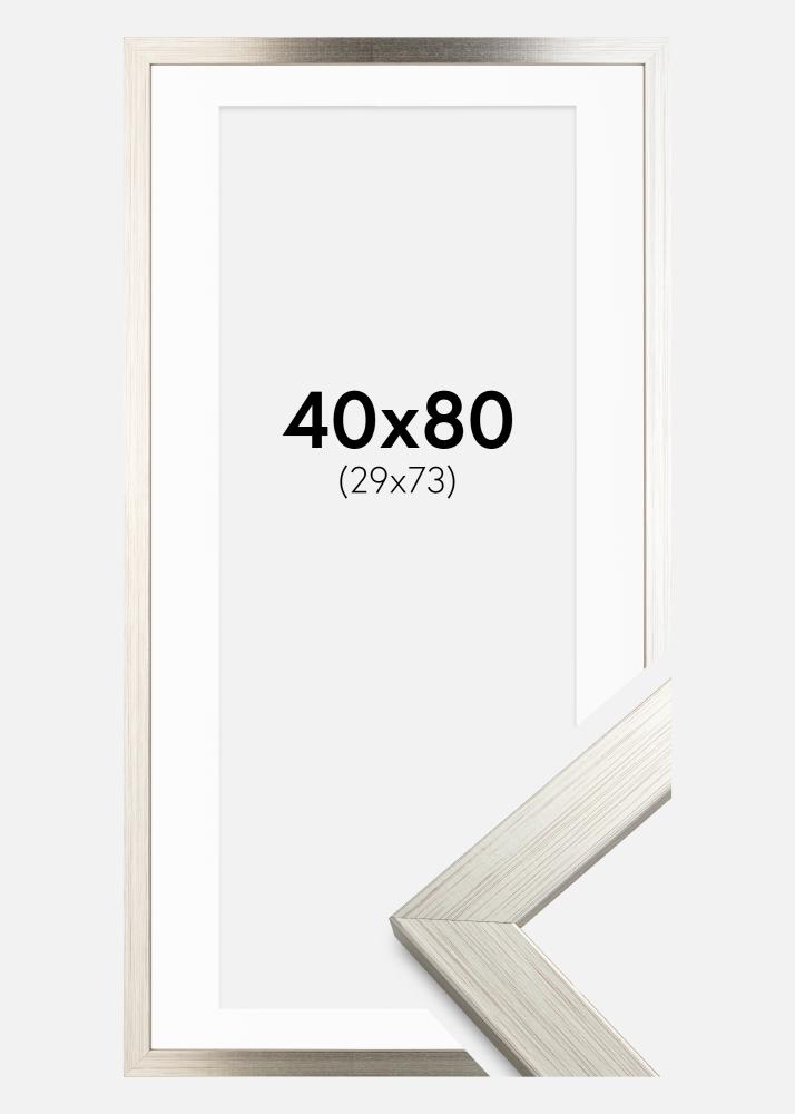 Keret Ezüst Wood 40x80 cm - Paszpartu Fehér 30x74 cm