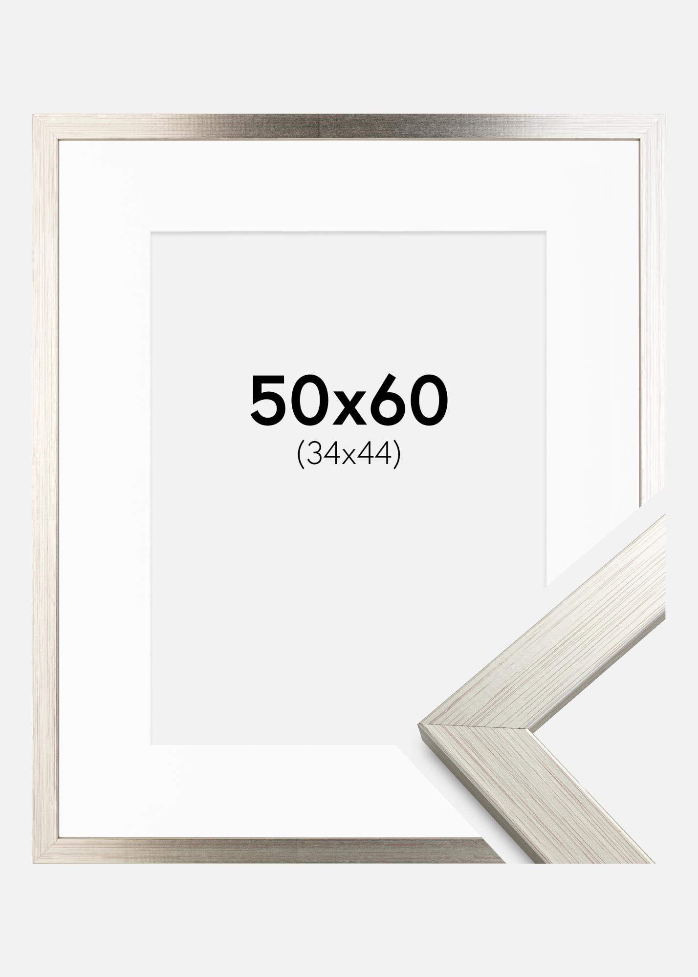 Keret Ezüst Wood 50x60 cm - Paszpartu Fehér 35x45 cm