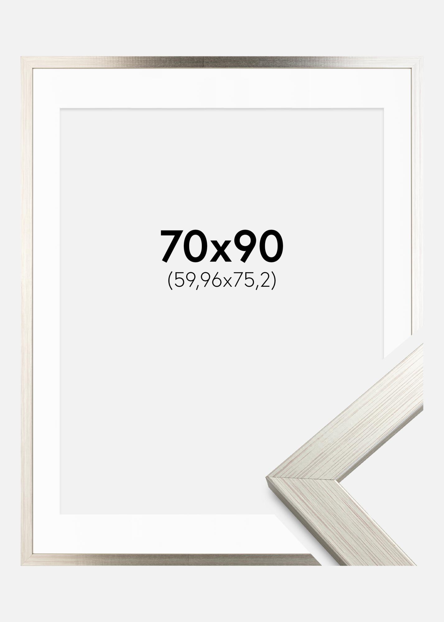 Keret Ezüst Wood 70x90 cm - Paszpartu Fehér 24x30 inches