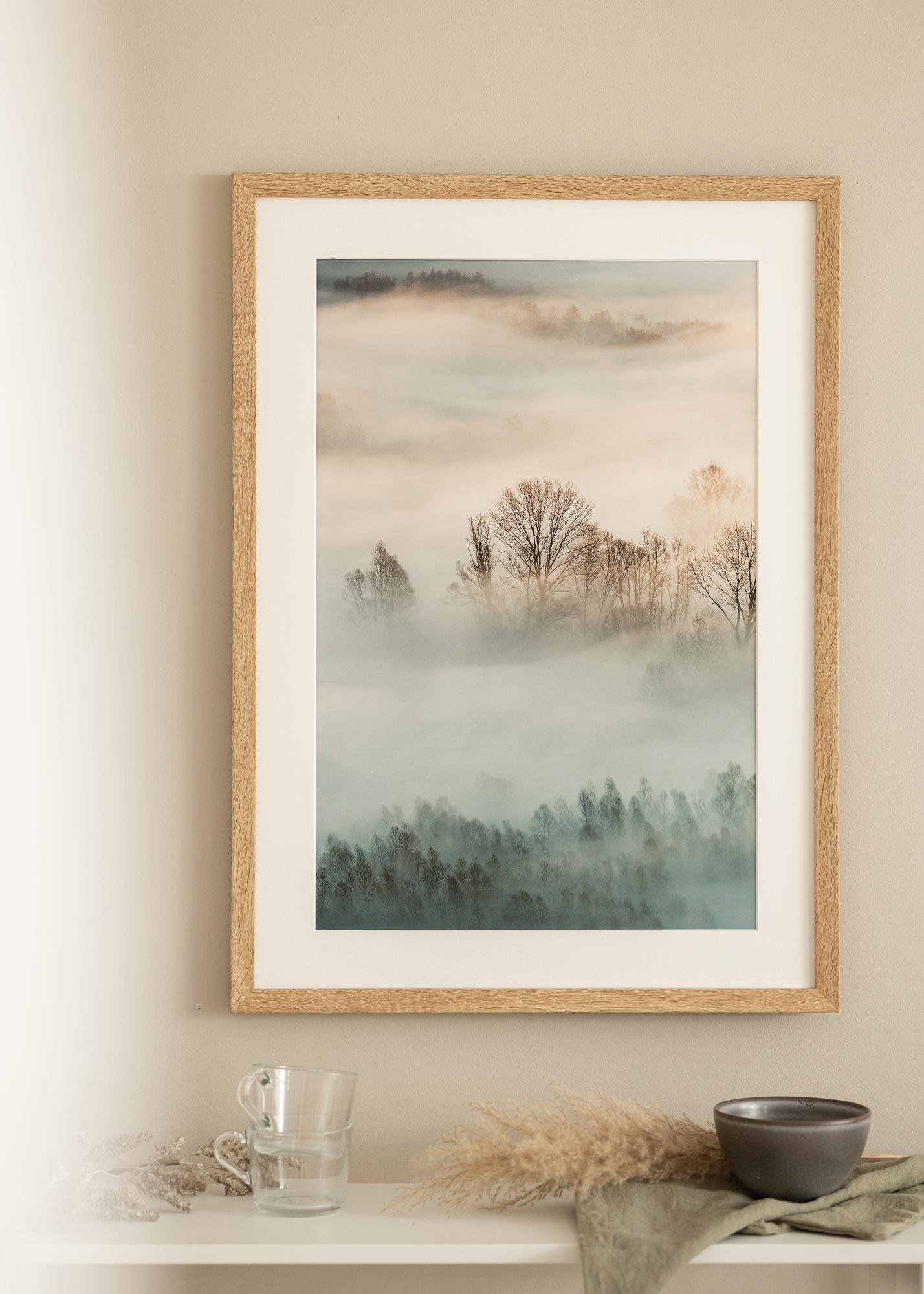 Ez egy elegáns tölgy árnyalatú keret, fóliázott felülettel és kifejezett fa struktúrával. A természetközeli szín kiválóan illik sokféle motívumhoz, például fekete-fehér fotóművészethez, minimalista printekhez és idézetes poszterekhez. A keret álló és fekvő formátumú képekhez is használható.