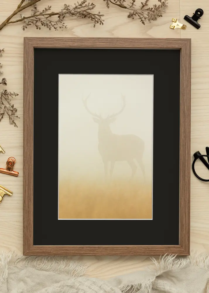 Adj kedvenc képeidnek azt a figyelmet, amit megérdemelnek, egy elegáns barna kerettel, fekete passepartout-tal kiegészítve. Ez a kifinomult kombináció kiemeli a fotód vagy műalkotásod kontrasztját és mélységét, miközben a fekete passepartout vizuális szünetet teremt, amely a néző szemét a képre irányítja. A passepartout professzionális megjelenést kölcsönöz az keretezésednek, és tökéletes a részletek és színek kiemelésére.
