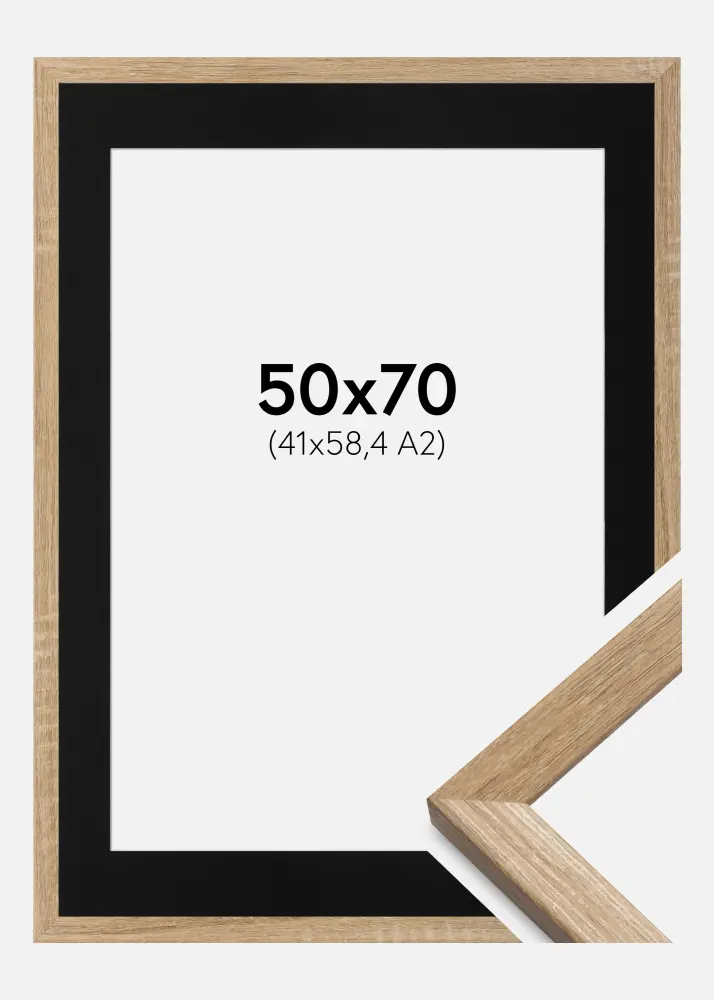 Keret Fiorito Világos Tölgy 50x70 cm - Paszpartu Fekete 42x59,4 cm (A2)