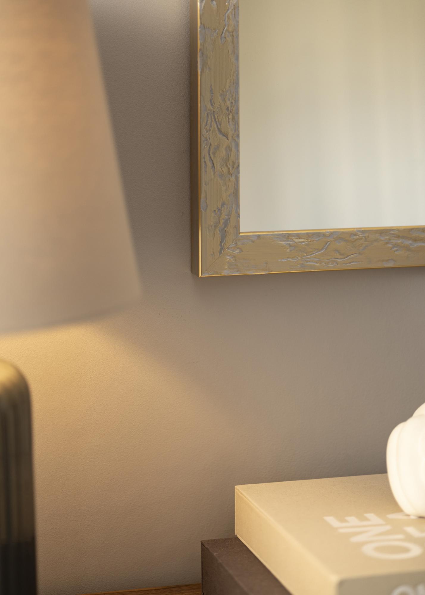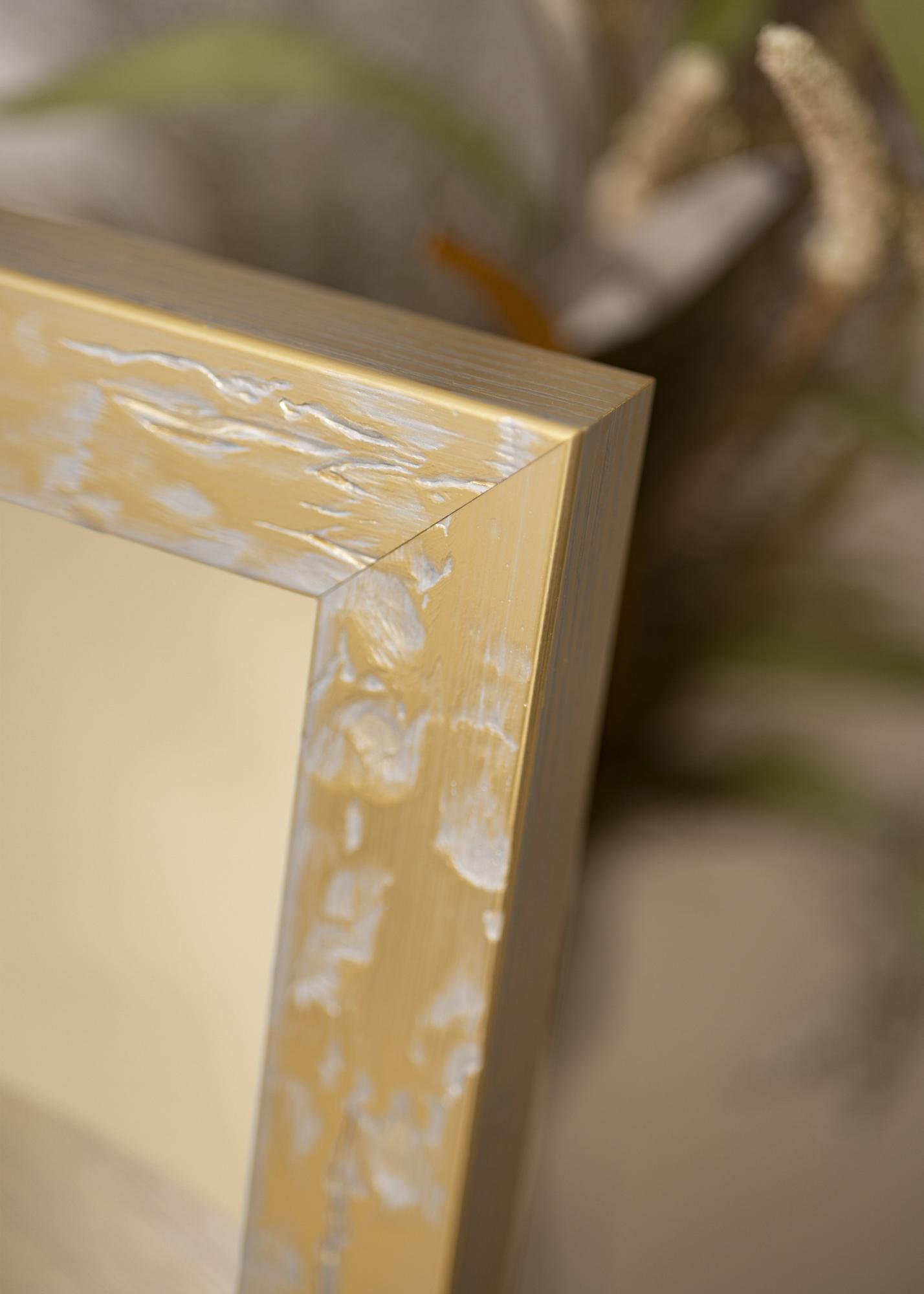 Freja egy gyönyörű sárga keret egyenetlen, erezett felülettel, ezüst színű egyenetlenségekkel. Az ezüst és arany szín kombinációjával Freja kellemes színárnyalatot kap, ami inkább ezüstre, mint aranyra hajlik. A 30 mm-es mély profiljával a Freja Arany kicsit kiemelkedik a faltól, ami látványos 3D hatást kelt. A kerethez üveg és hátlap tartozik.