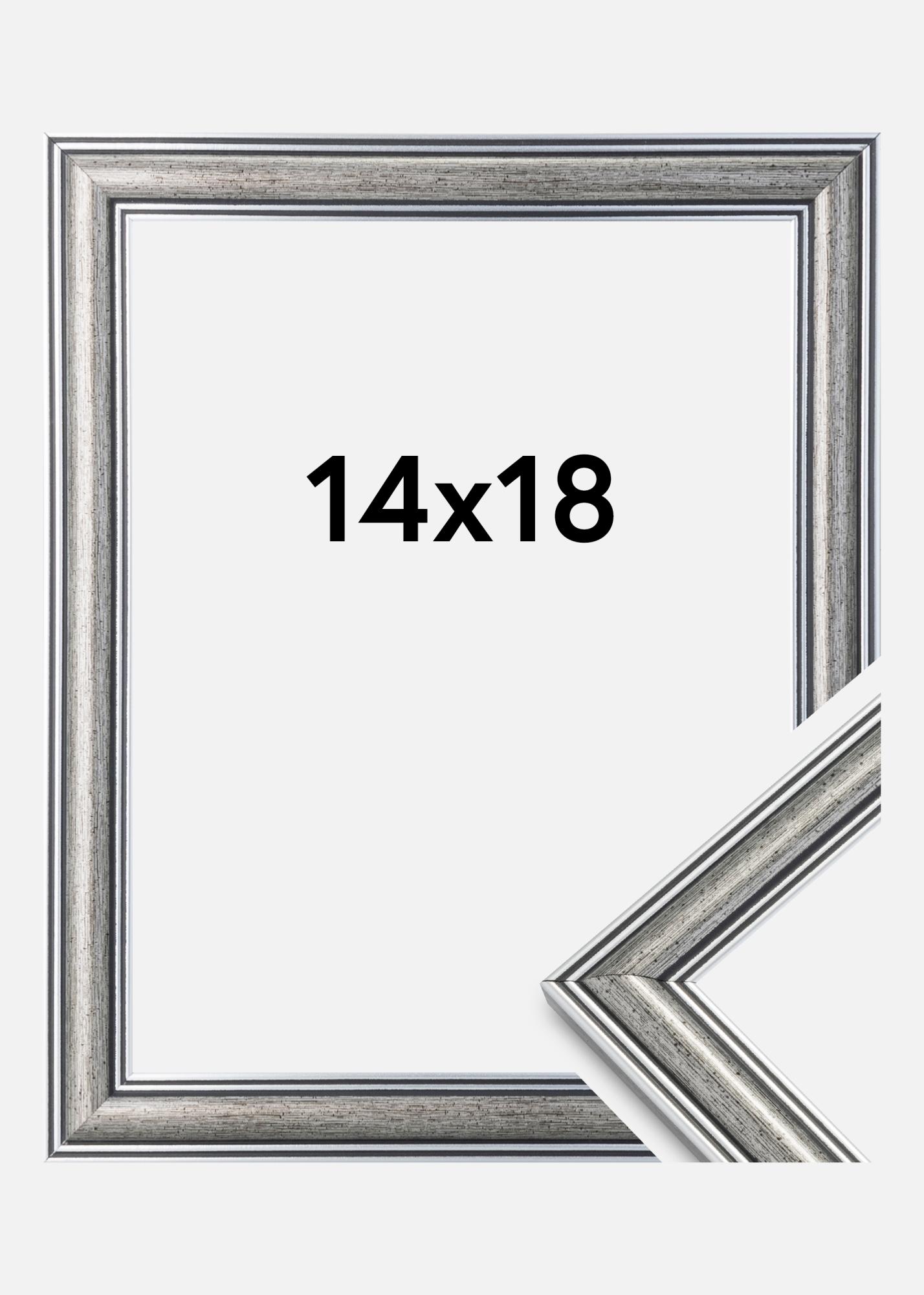 Frigg egy ezüst keret fekete vonalakkal és fekete foltos elemekkel. Kiválóan alkalmas, ha széles hagyományos ezüst keretet keresel, amely sokféle képhez és környezethez illik.