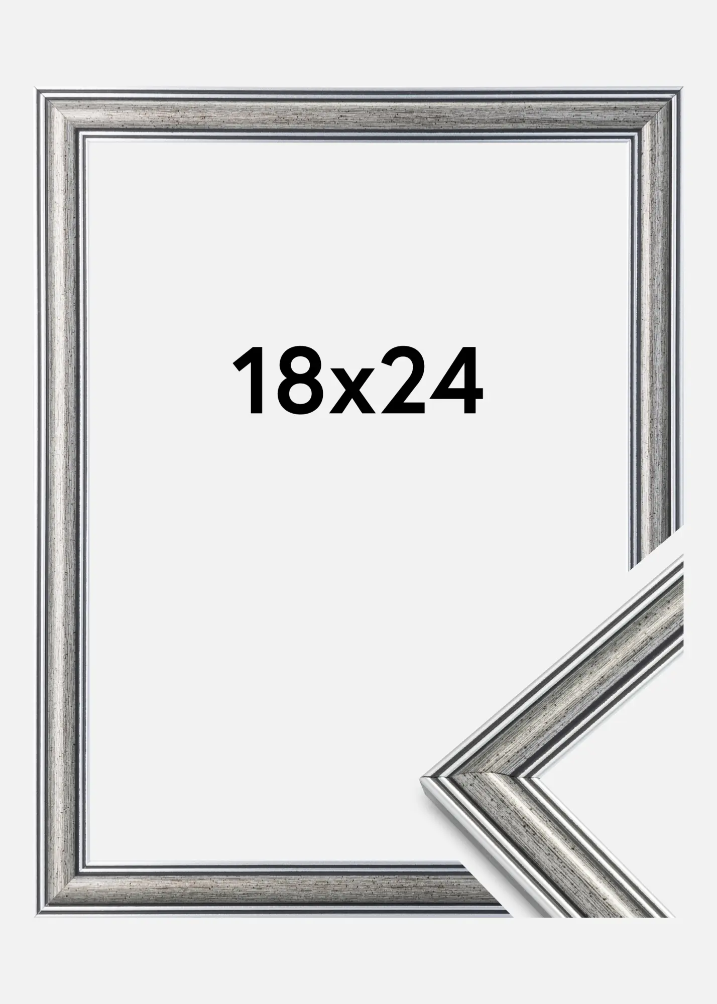 Frigg egy ezüstkeret fekete vonalakkal és fekete foltokkal. Kiváló választás, ha egy széles, hagyományos ezüstkeretet keres, amely számos képhez és környezethez illik.