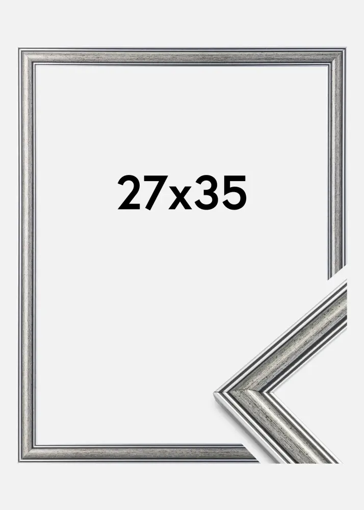 Frigg egy ezüst képkeret fekete vonalakkal és fekete pöttyös elemekkel. Kiváló választás, ha széles, hagyományos ezüst keretet keresel, ami sokféle képhez és környezethez illik.